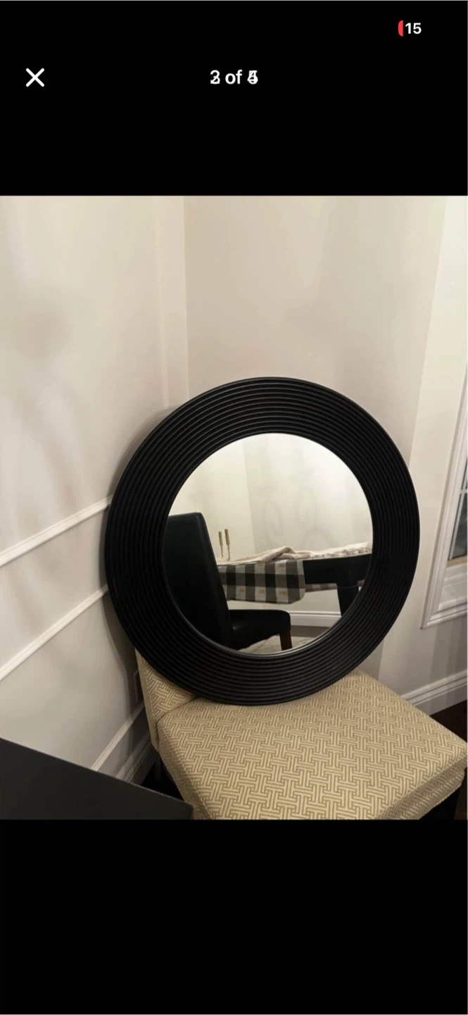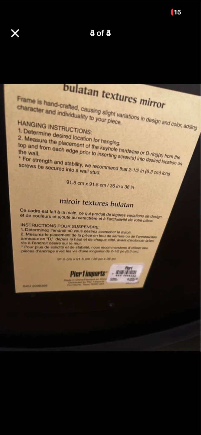 This is a Pier 1 Imports Bulatan Textures Mirror. The frame is hand-crafted and causes slight variations in design and colour. It's 91.5 cm x 91.5 cm or 36 in x 36 in.