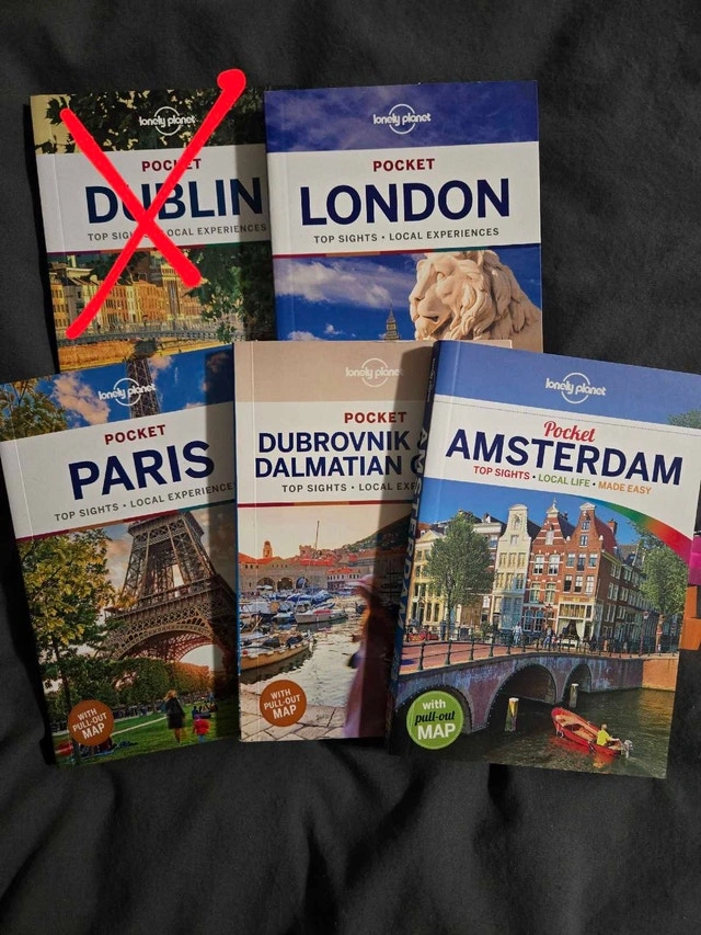 Selling guidebooks for $5 each. They are in excellent condition, never written in or used. Travel plans changed. Pick up near Burlington Mall.