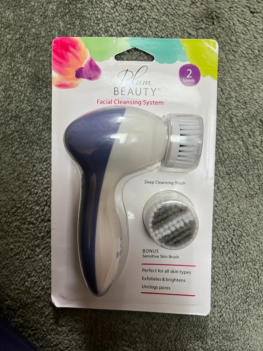 Plum Beauty Facial Cleansing System with dual speed technology. It includes a motorized system, a deep cleansing brush, and a bonus sensitive skin brush. This system exfoliates and brightens your skin while unclogging pores. item comes from a pet and smoke free home. Port union/401/Pickering for pick up.