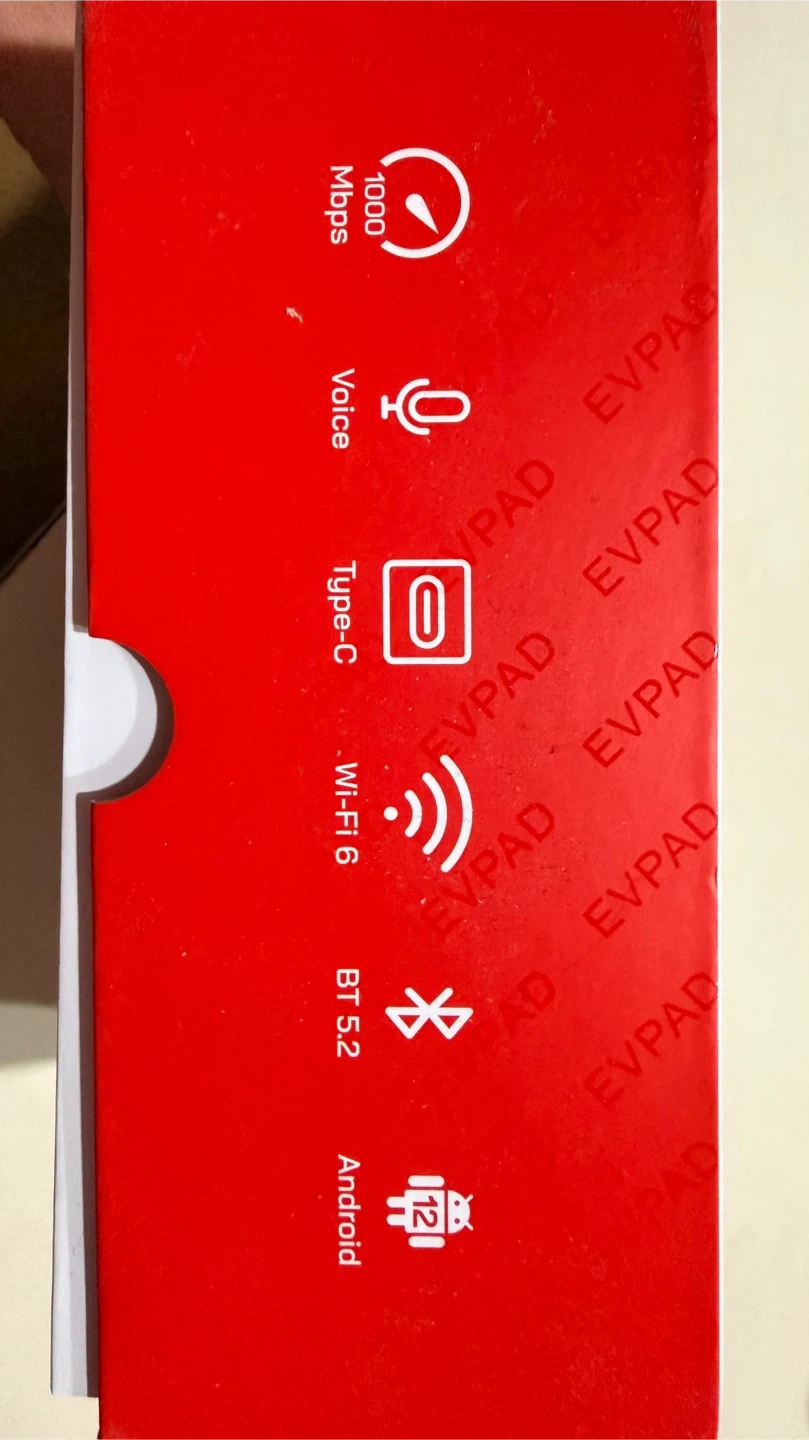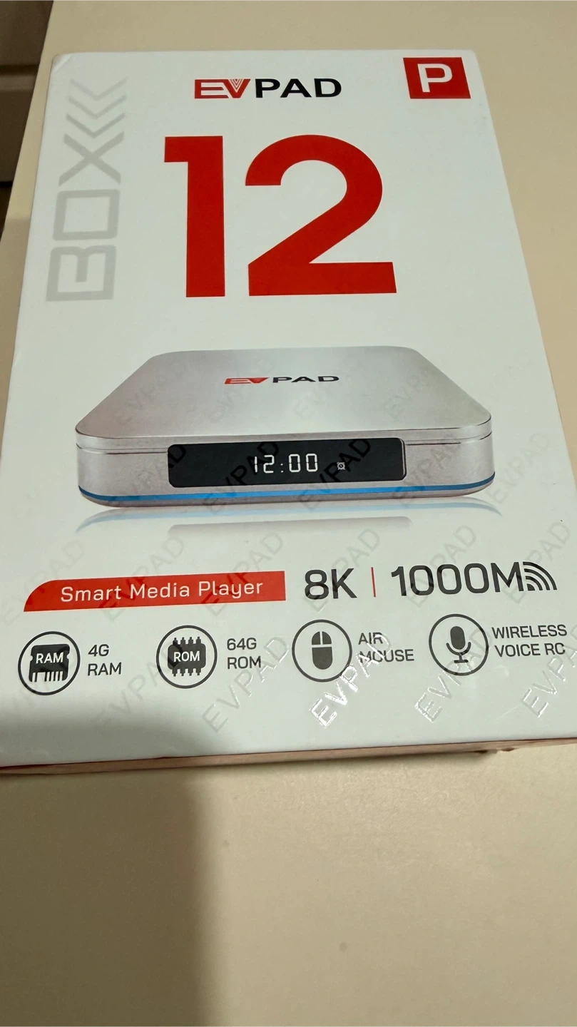 This EVPAD 12 is a smart media player. It features 4GB RAM and 64GB ROM. Runs on Android 12 with Wi-Fi 6 and Bluetooth 5.2 connectivity. Supports 8K resolution at 1000Mbps.