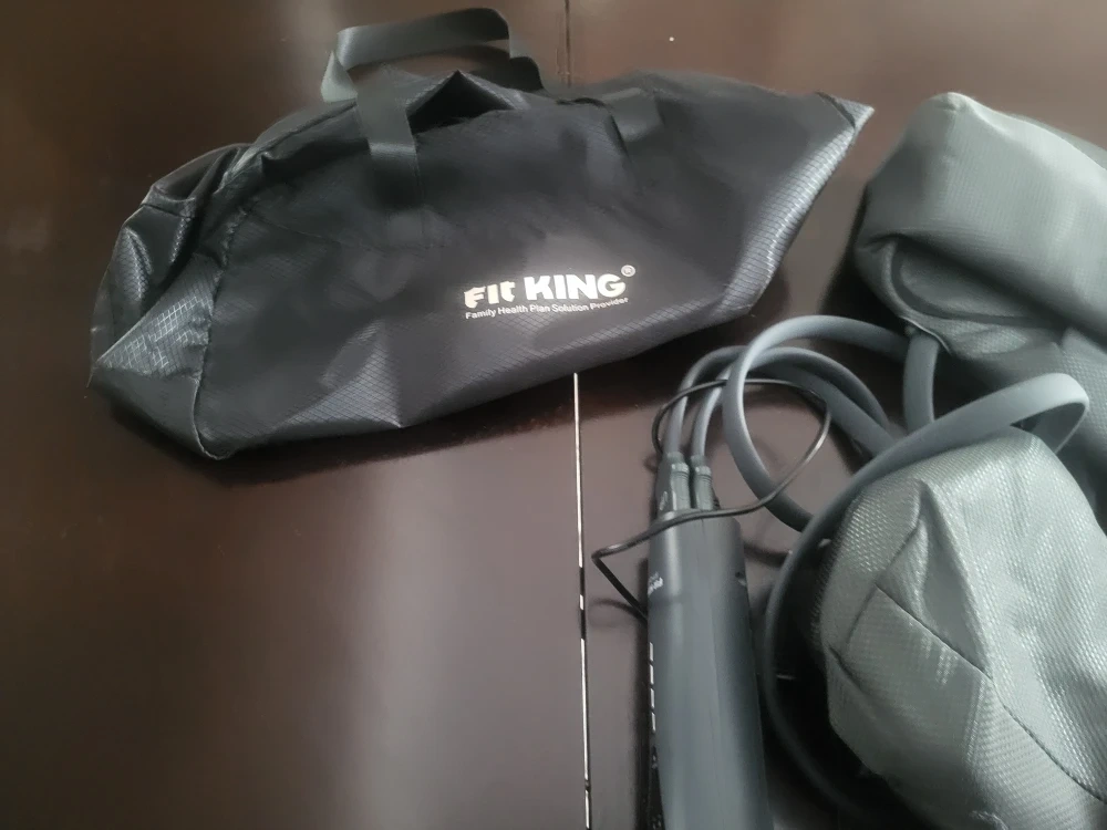 This Fit King leg massager comes with heat functionality. It includes a carrying bag for easy storage and transport. It's designed for relaxing leg massages.