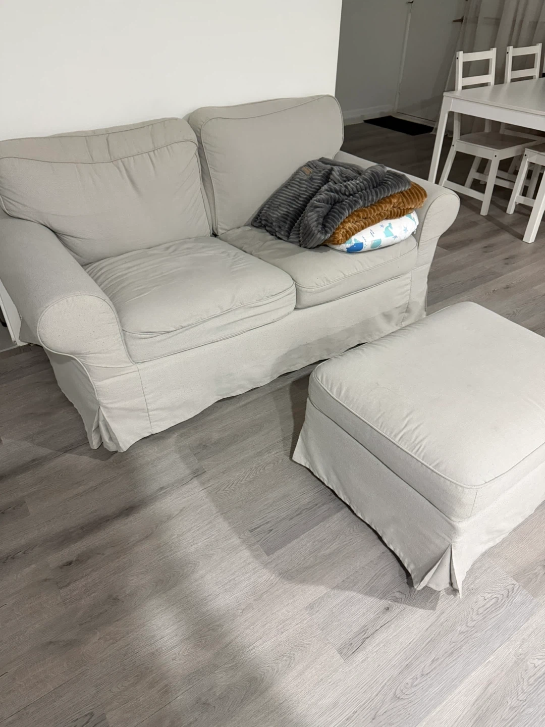 Two Ikea Uppland Light Grey Loveseat Sofa with Ottoman