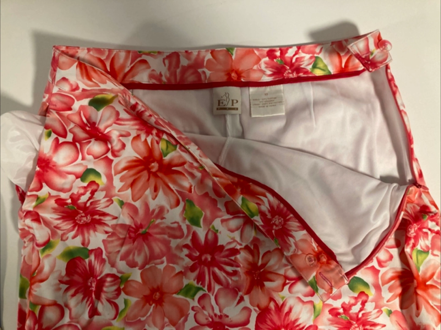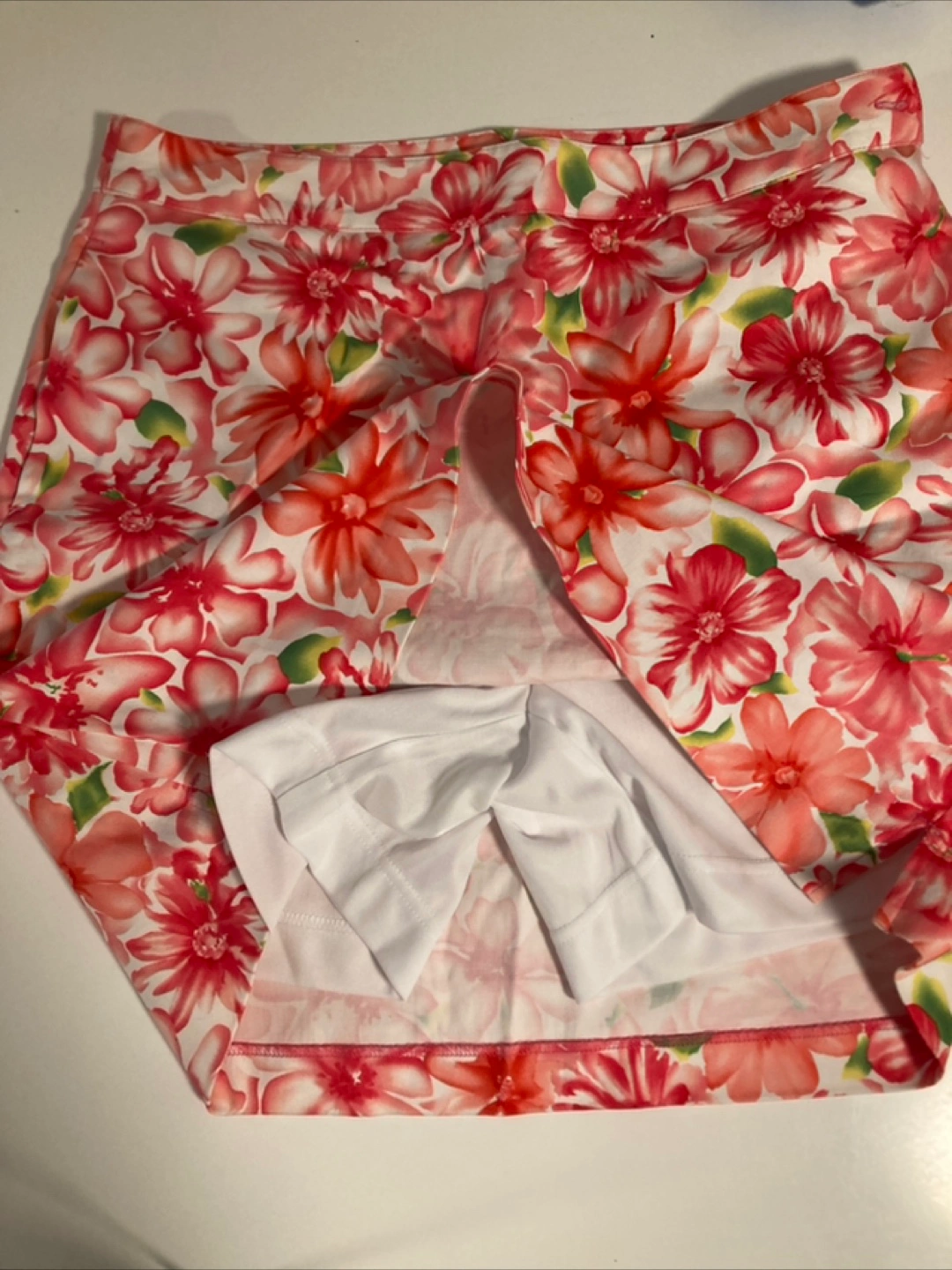 Women's golf skort. Size 10. Floral print. Cotton and spandex shell.