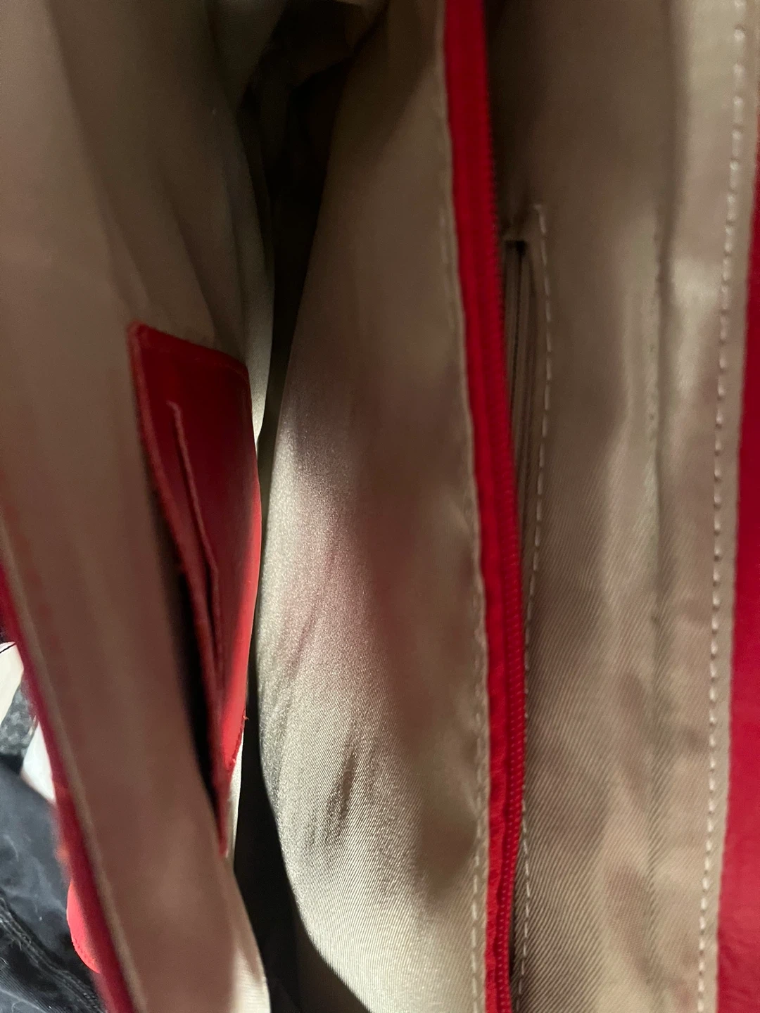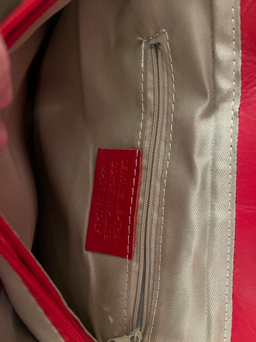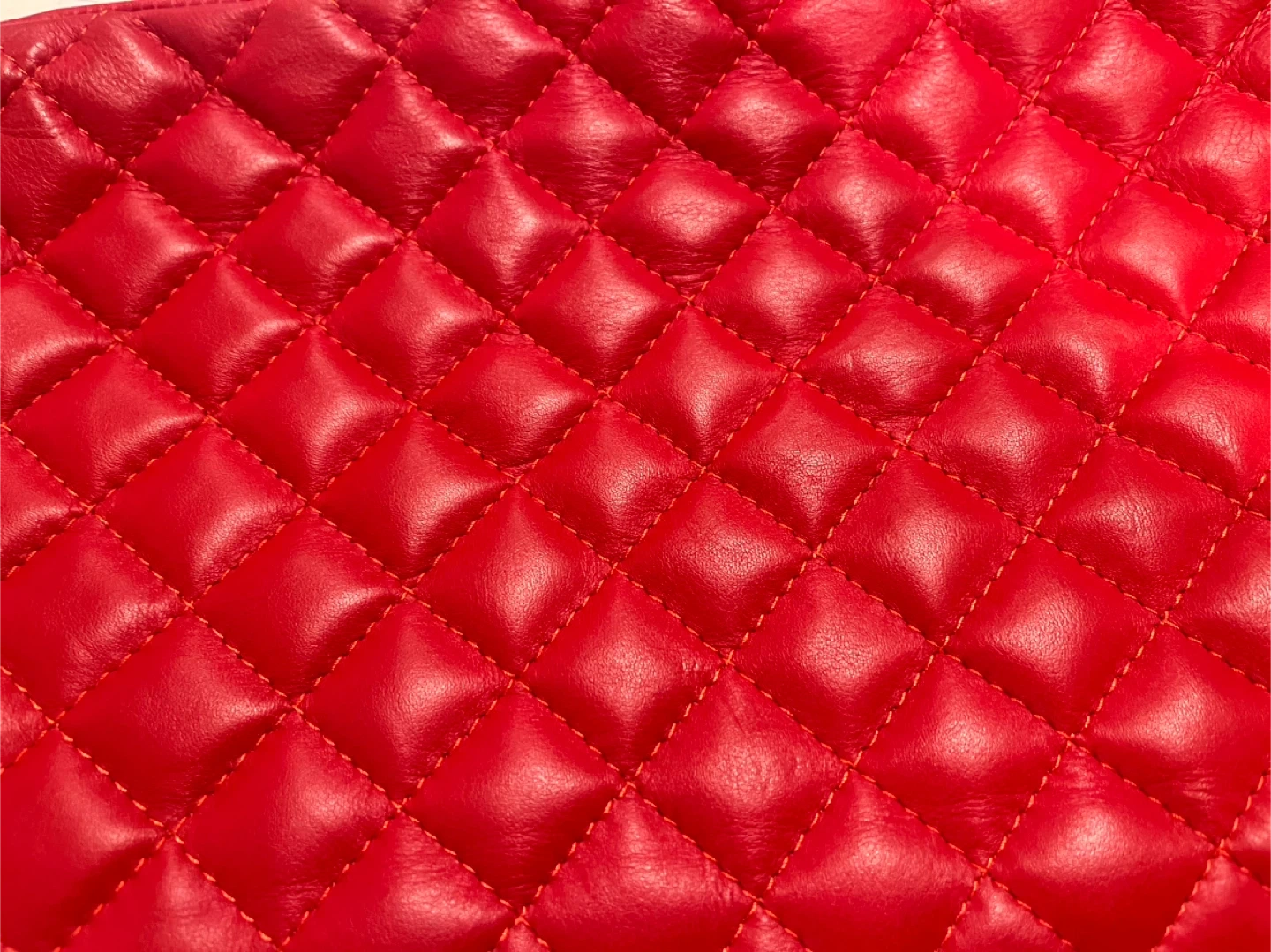 Red leather shoulder bag. Quilted. It's made with leather material from Italy. The interior has a zippered pocket and a slip pocket for essentials. This bag adds a pop of colour to any outfit!