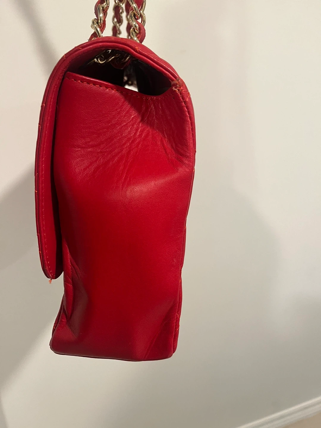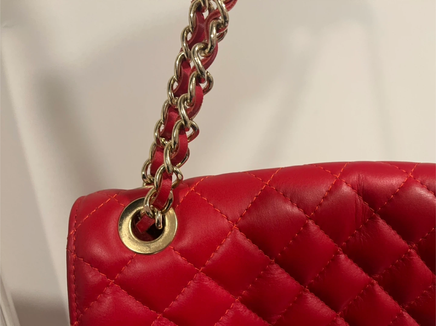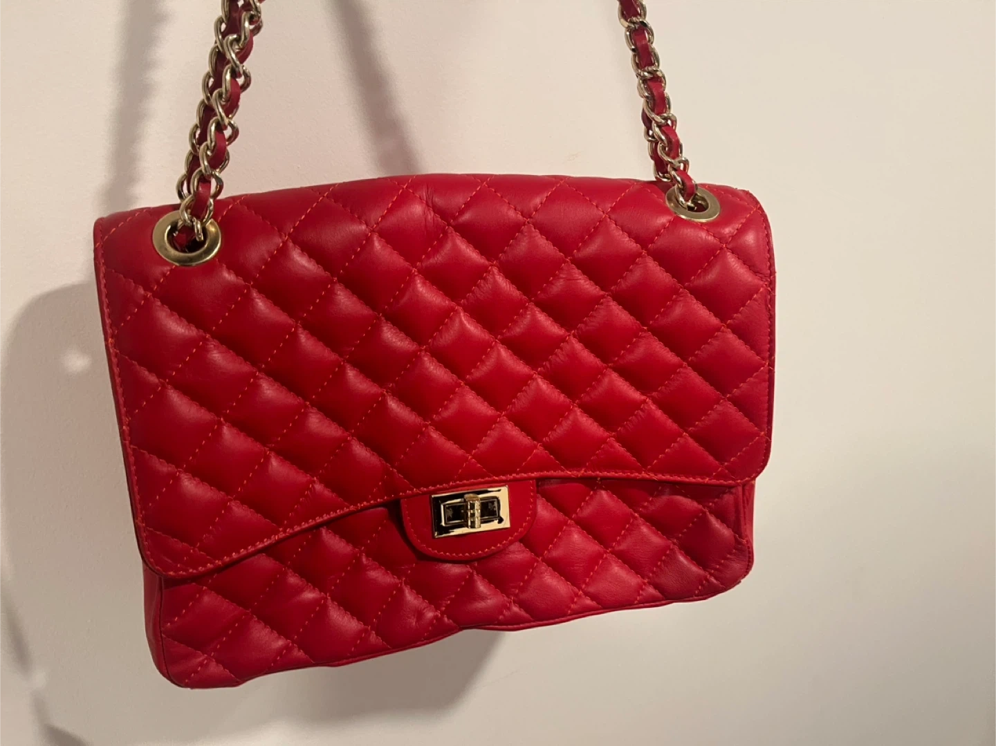 Red Quilted Shoulder Bag with Gold Chain