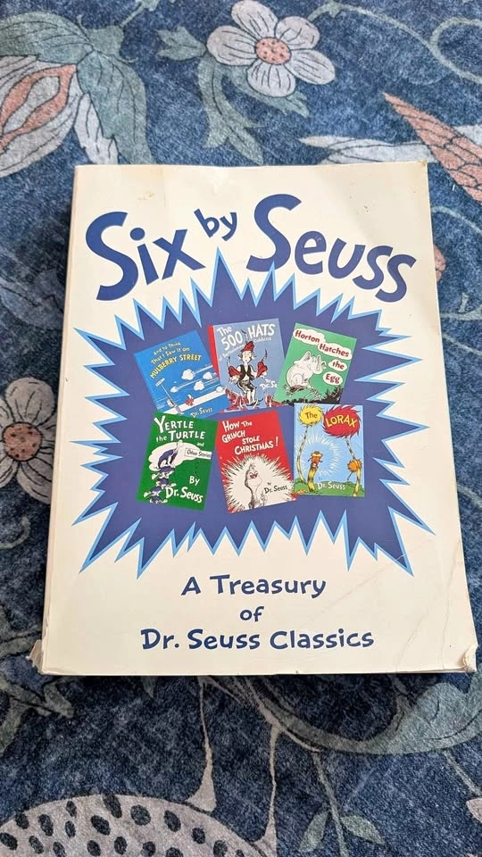 Fun Dr. Seuss book set. This 'Six by Seuss' treasury has six classic stories inside. Includes 'And to Think That I Saw It on Mulberry Street,' 'The 500 Hats of Bartholomew Cubbins,' 'Horton Hatches the Egg,' 'Yertle the Turtle and Other Stories,' 'How The Grinch Stole Christmas!,' and 'The Lorax.' Great for kids and collectors. GUC SFH pickup only St Clair Ave East and O'Connor.