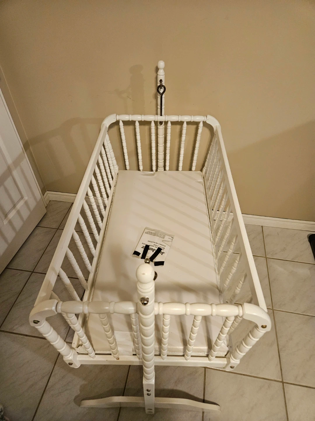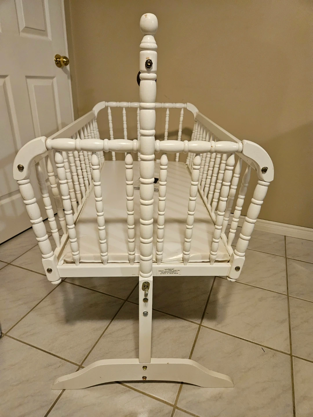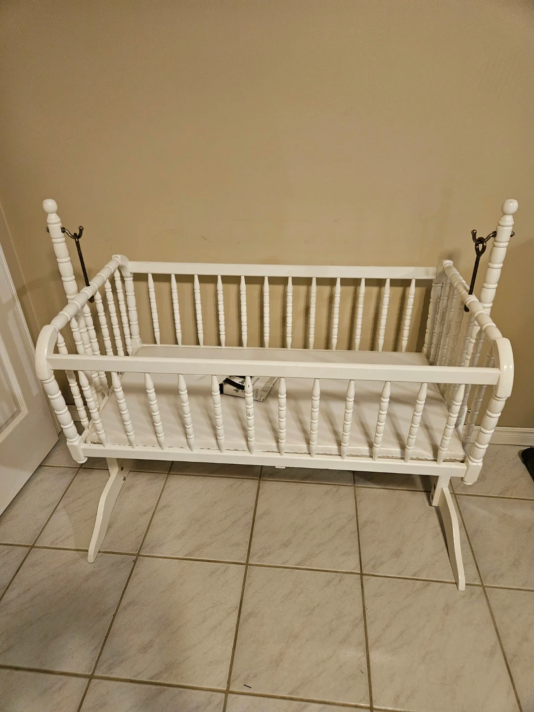 Jenny Lind infant cradle mid.#1498 in good condition. Bed is 20"Wide x 36" long x 12" high when used without rocker. $40.00 cash OBO.