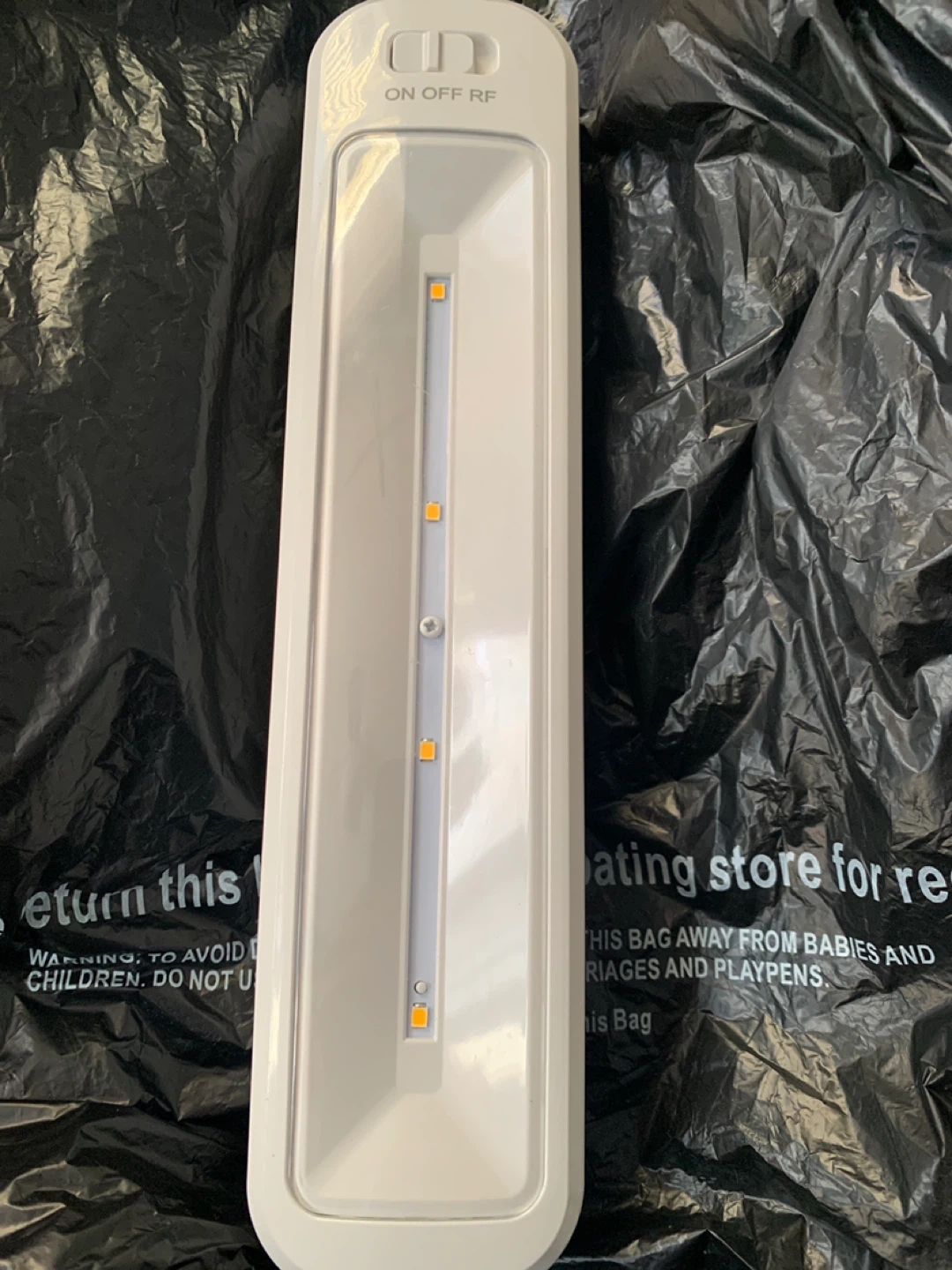 This is an Energizer LED light. It's white and has an ON, OFF, and RF setting. Uses 4 AA batteries.one of a kind!!!!I could drop the price to $5?