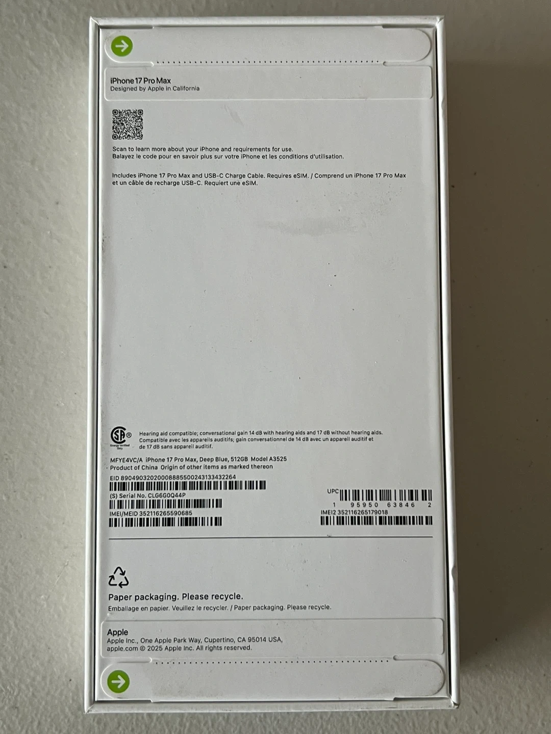 BRAND NEW IPHONE 17 PRO MAX 512 GB DEEPBLUE.