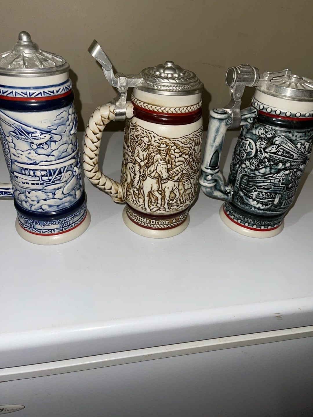 Collection of 3 Decorative Beer Steins with Lids