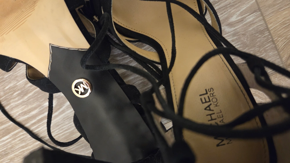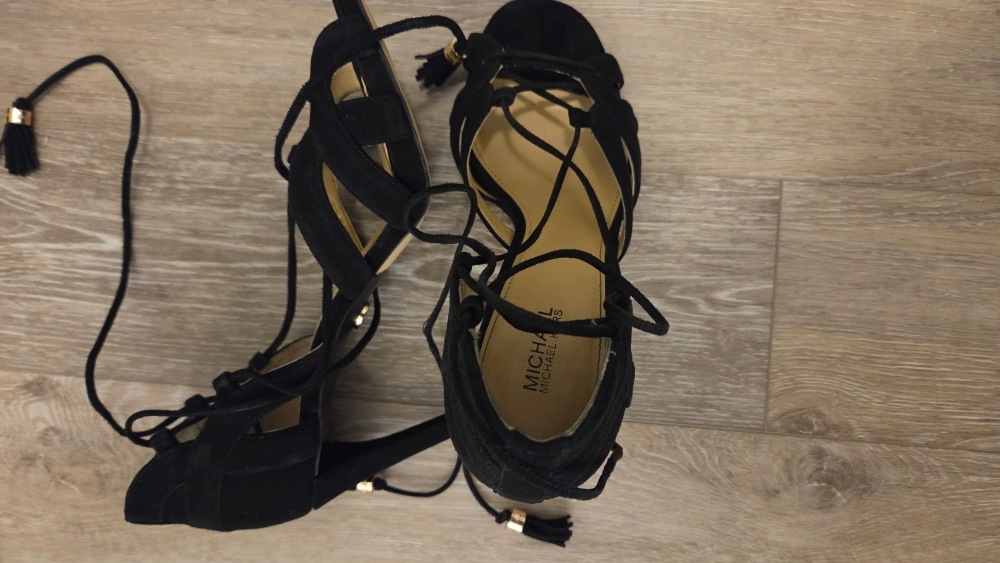 Selling a pair of Michael Kors black lace-up heels. They feature a stylish lace-up design and the classic MK logo. Perfect for adding a touch of elegance to any outfit! Available for pick up near Weston and Lawrence.