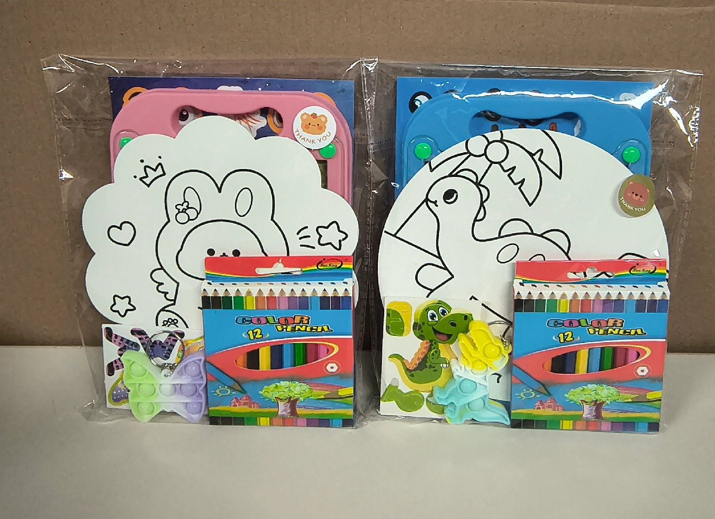 Each bag includes: -1*handheld balanced maze toy -1*3D mini puzzle -1*DIY sticker -1*fidget keychain -1*coloring page -1* crayon pencils Please check my other posts for substitute!