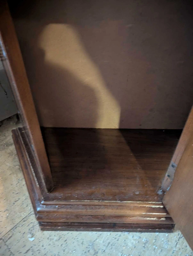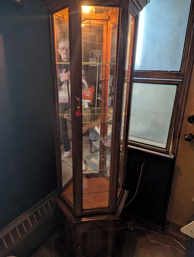 34This 6 ft curio display cabinet is perfect for showcasing your collectibles or fine china, featuring glass shelves and a built-in light to highlight your items. This cabinet would be a great addition to any household. * Height: Approximately 6 feet * Material: Wood with glass shelves * Features: Built-in lighting * Style: Corner unit Looking to add a touch of elegance to your space? This cabinet is ready to be the star of your living room or dining area. Don't miss out on giving your treasures a place to shine! If the ad is up, the cabinet is available! FIRM PRICE