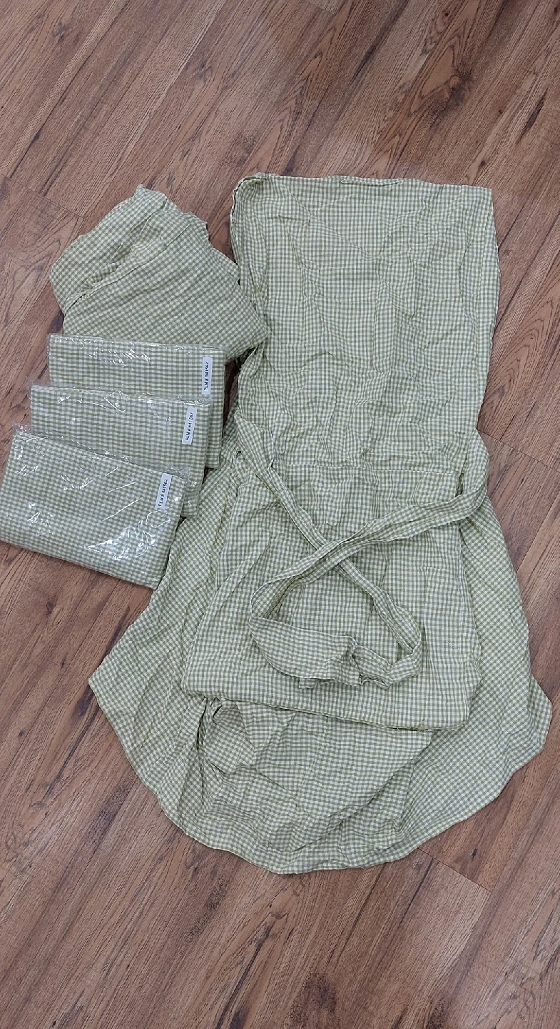 15Selling 6 Gingham cotton chair covers in green and white. They're 100% cotton and never used. Will add a lovely look to your dining room!