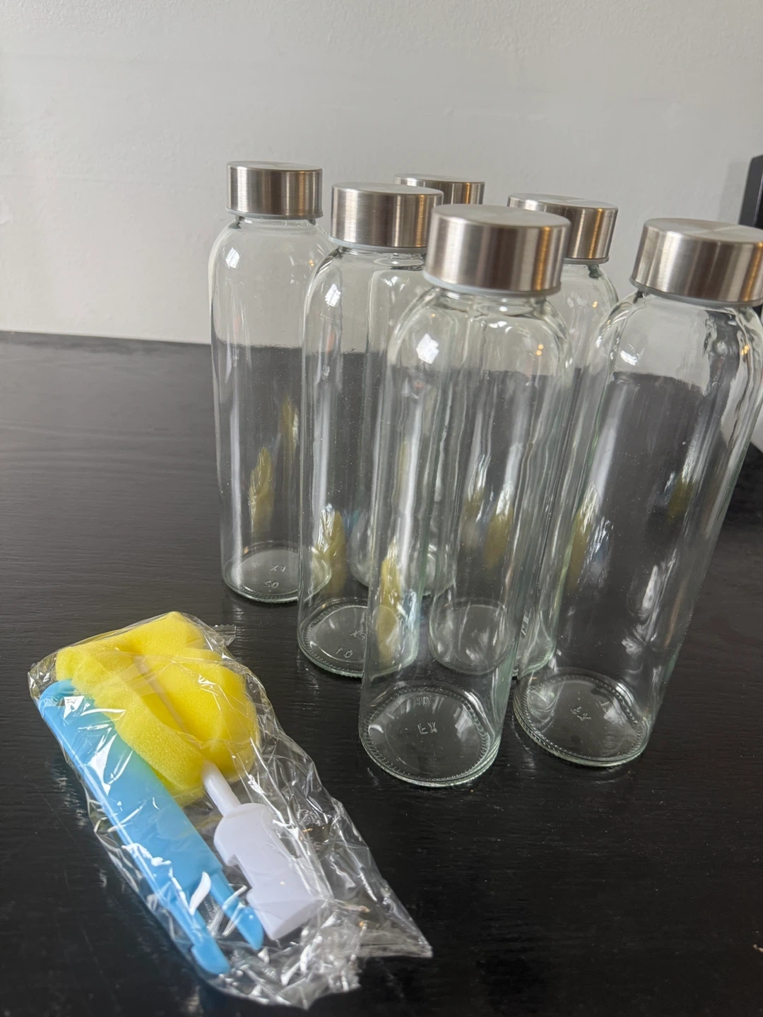 *CASH Only* New ~ Never Used Selling 6 glass water bottles that holds 500 ml or 16 oz. It features a smooth mouth and a screw-on airtight cap. The bottom is thickened for durability, and it's designed to be leak-proof. [Check Out My Other Listings]