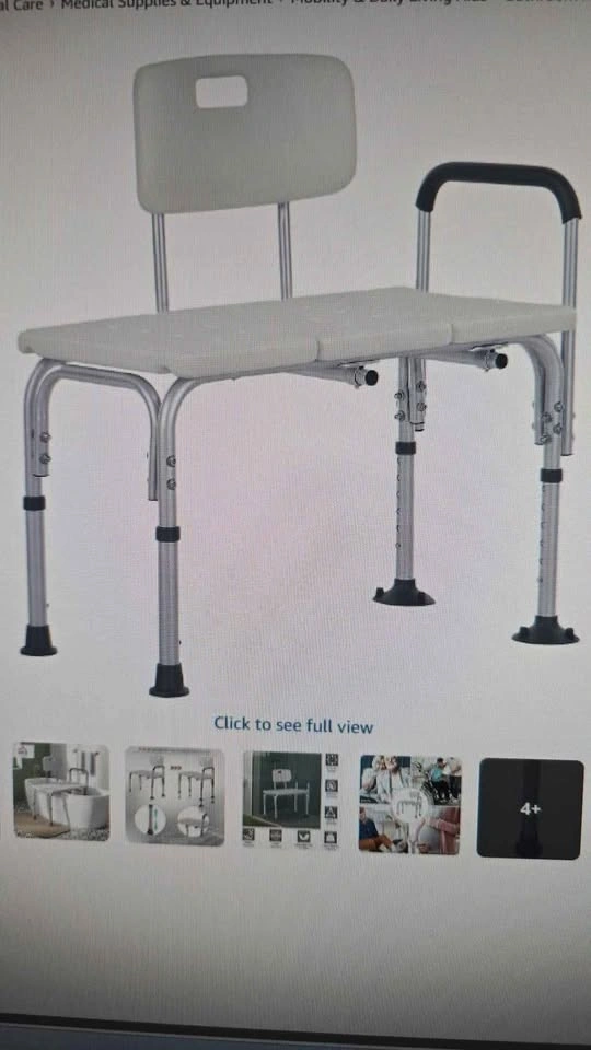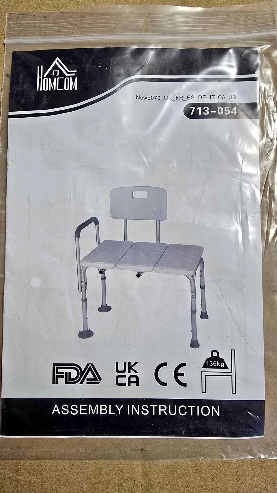 10Transfer Bench for Bathtub, Shower Chair with Backrest Item Wt: 4.54 KG Max Wt: 300 LBS