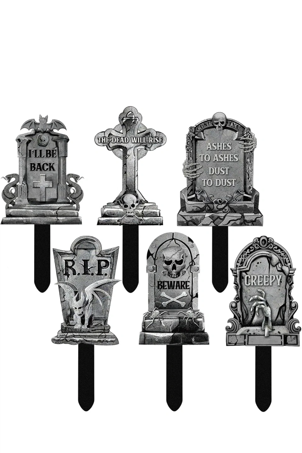 6-Piece Halloween Metal Tombstone Decorations - New!