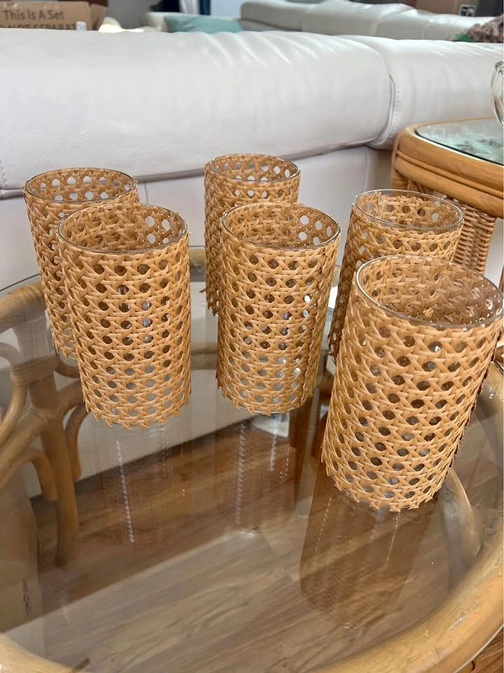 $40 for 6 rattan-wrapped vases (must take all). Used for cocktail tables at our wedding. 6” high, 3.5” wide. Pickup Tsawwassen. Cash only please.