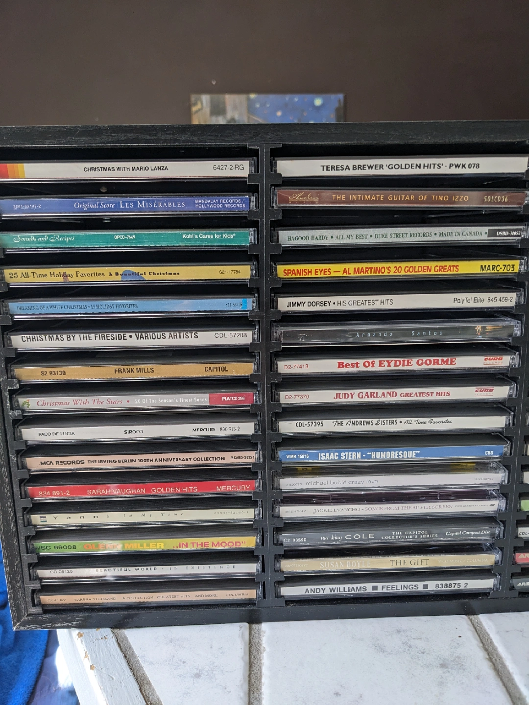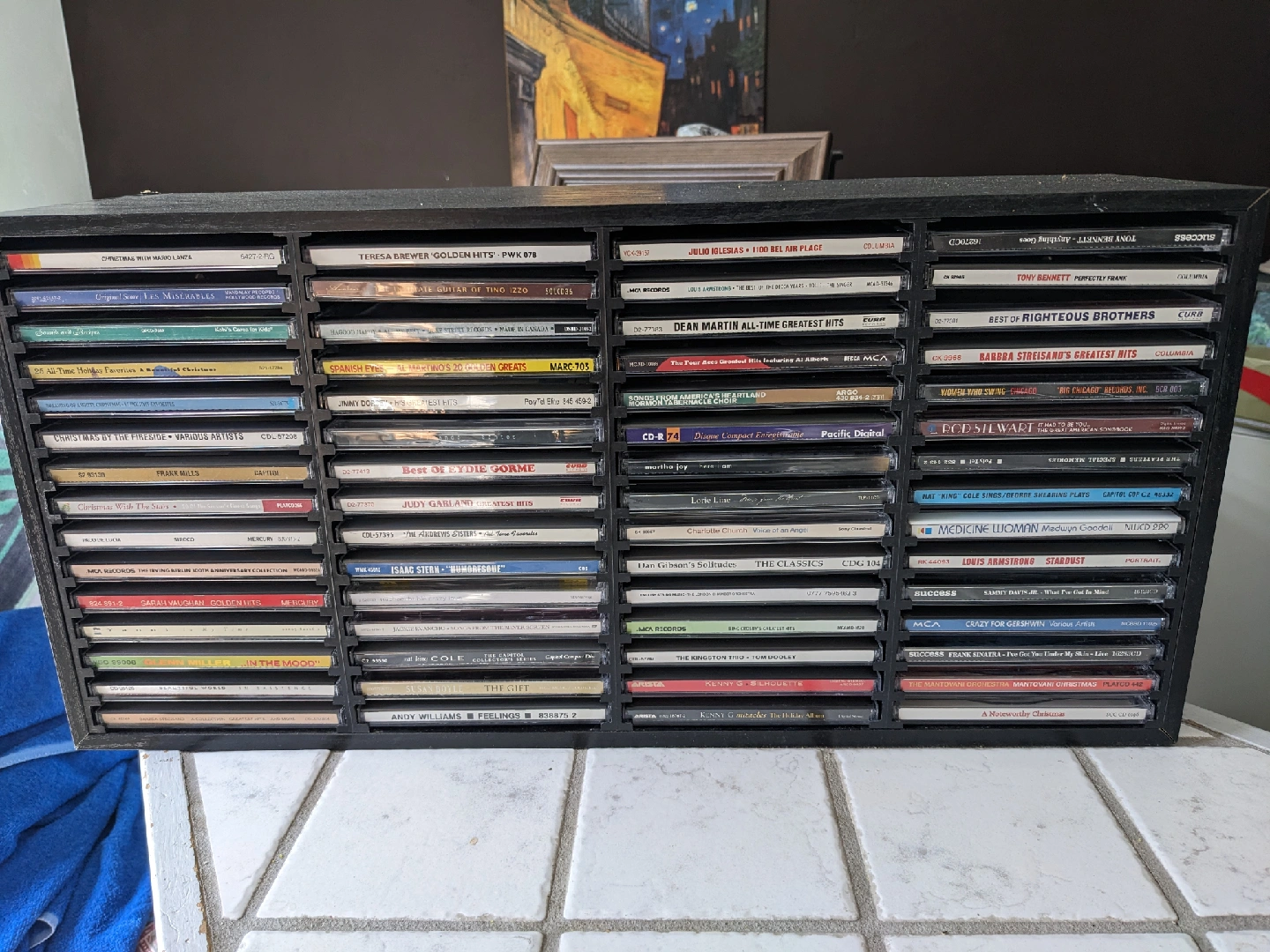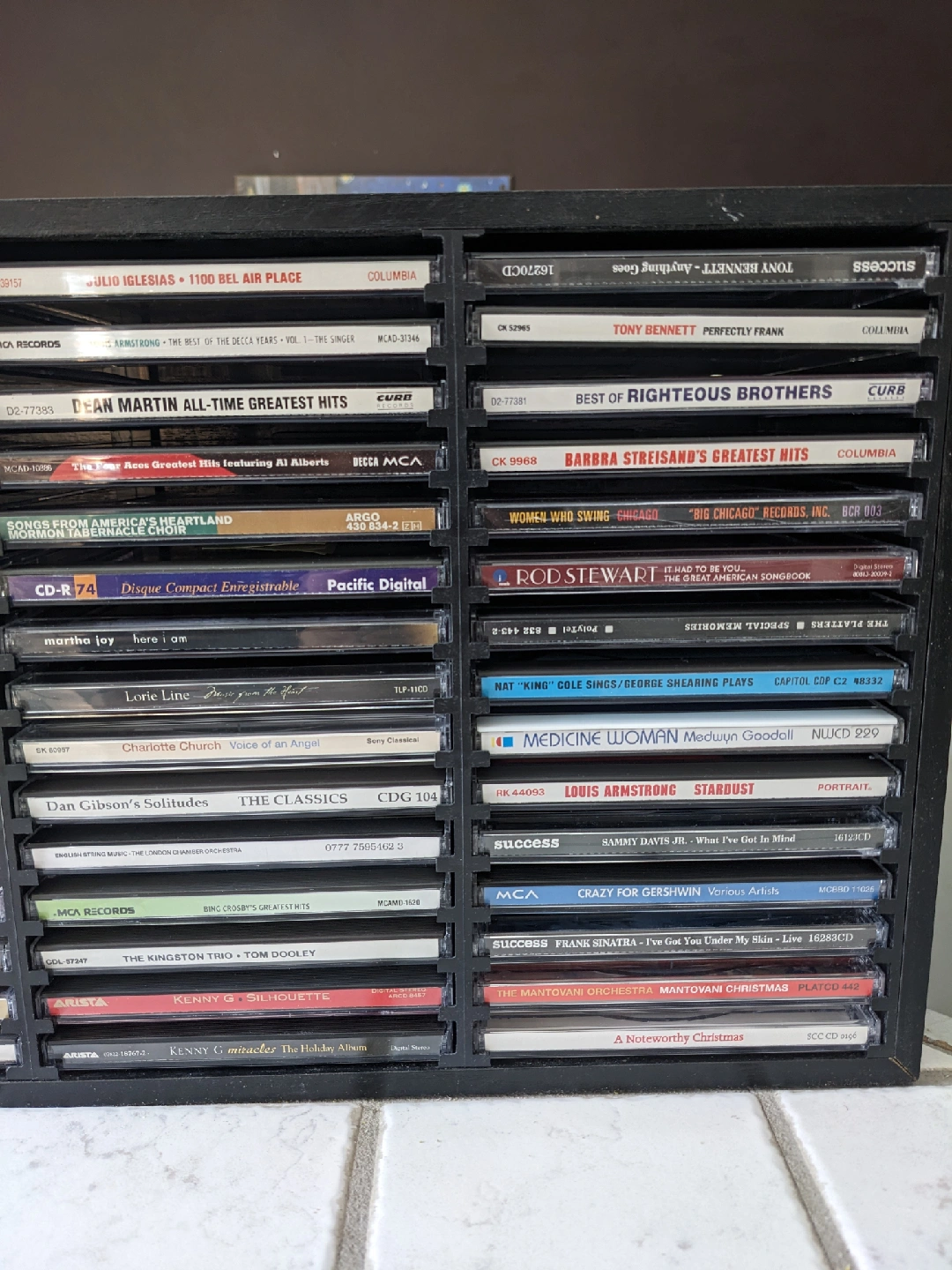 Selling the black wood holder for 60 CDs. CDs are included (a variety of artists and genres!) Great for anyone looking to expand their music library or start a new collection