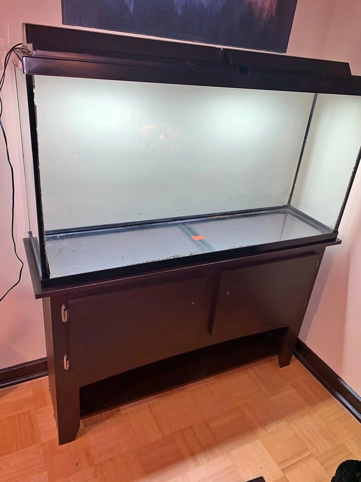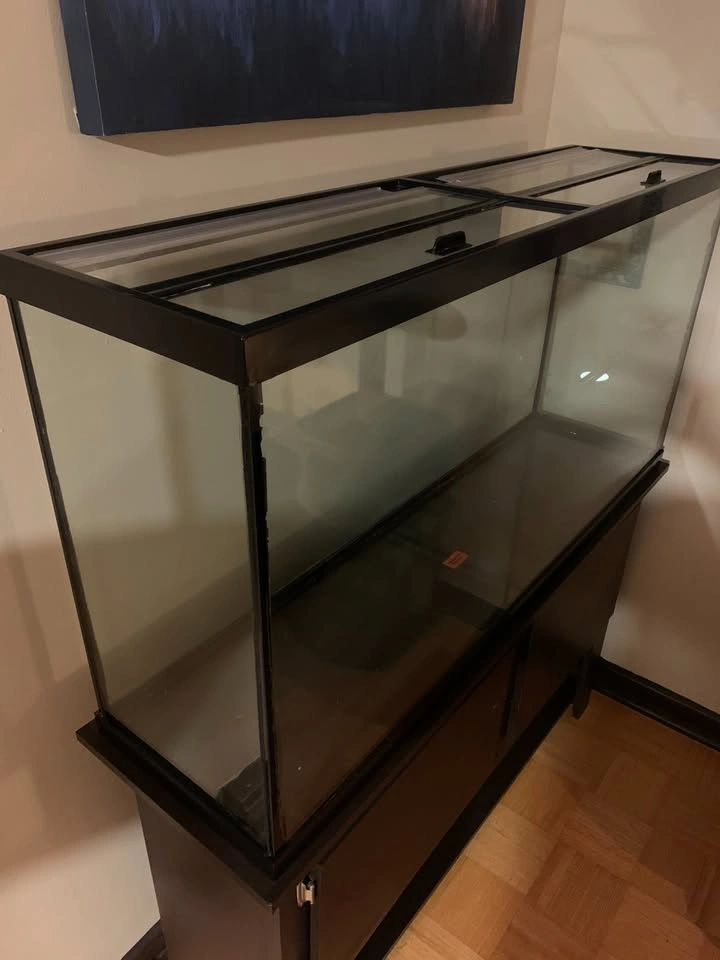 Hi there, I've listed my beautiful 4 1/2 year old 60 gallon tank/canopy with stand for sale. I'm upgrading to a larger tank, so I'm hoping someone can be the new owner of this classic. I've included the original lighting canopy back onto it. I had a glass canopy with a different light which is in fact in the video. If you would like the glass canopy it would be $250 for everything thats including the original light canopy.There's a scratch on the right bottom side from removing the gravel I made sure to take a picture of. Once filled though with water, it's not very obvious. Cheers