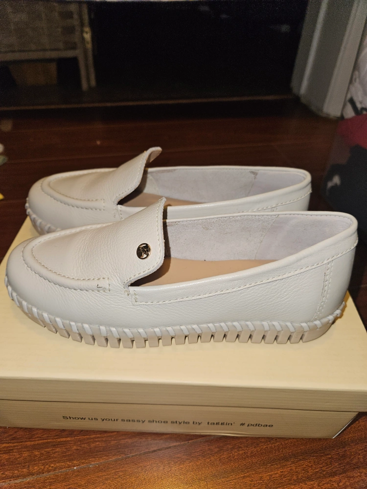 These BOTTERO Comfort loafers (Brazilian brand) are a stylish and comfy choice! They're made of genuine leather and come in a lovely off-white colour. The shoes are new.