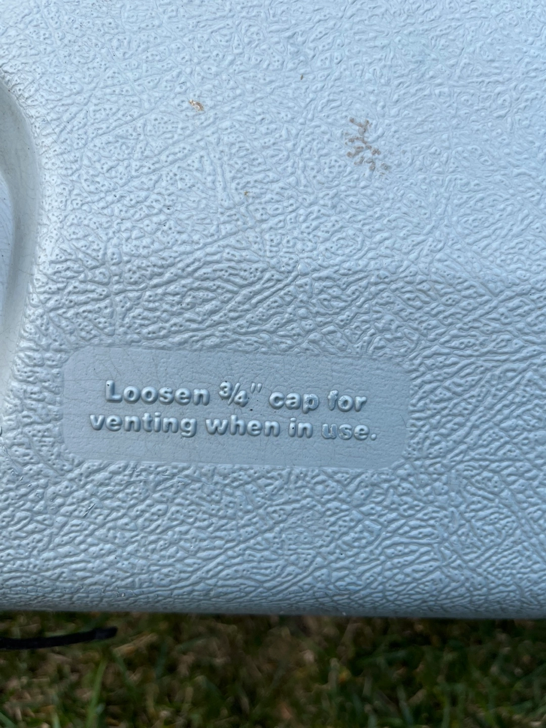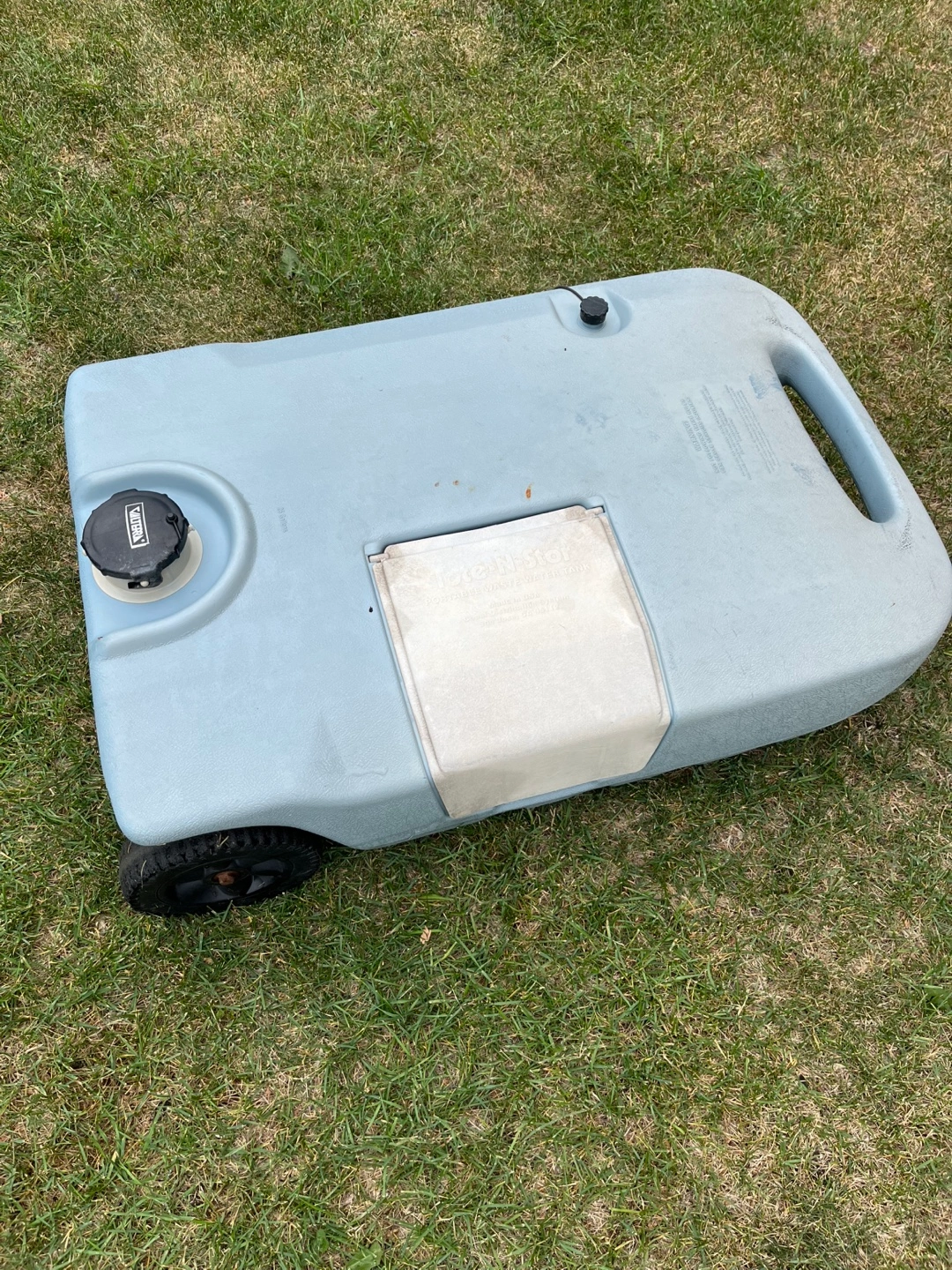 Valterra RV septic tote for sale. It's a 25 gallon capacity tote, cleaned, sanitized and ready for a new home. Missing is the pull bar which can be purchased at Walmart or Amazon online under $25. Perfect for managing waste water while camping.