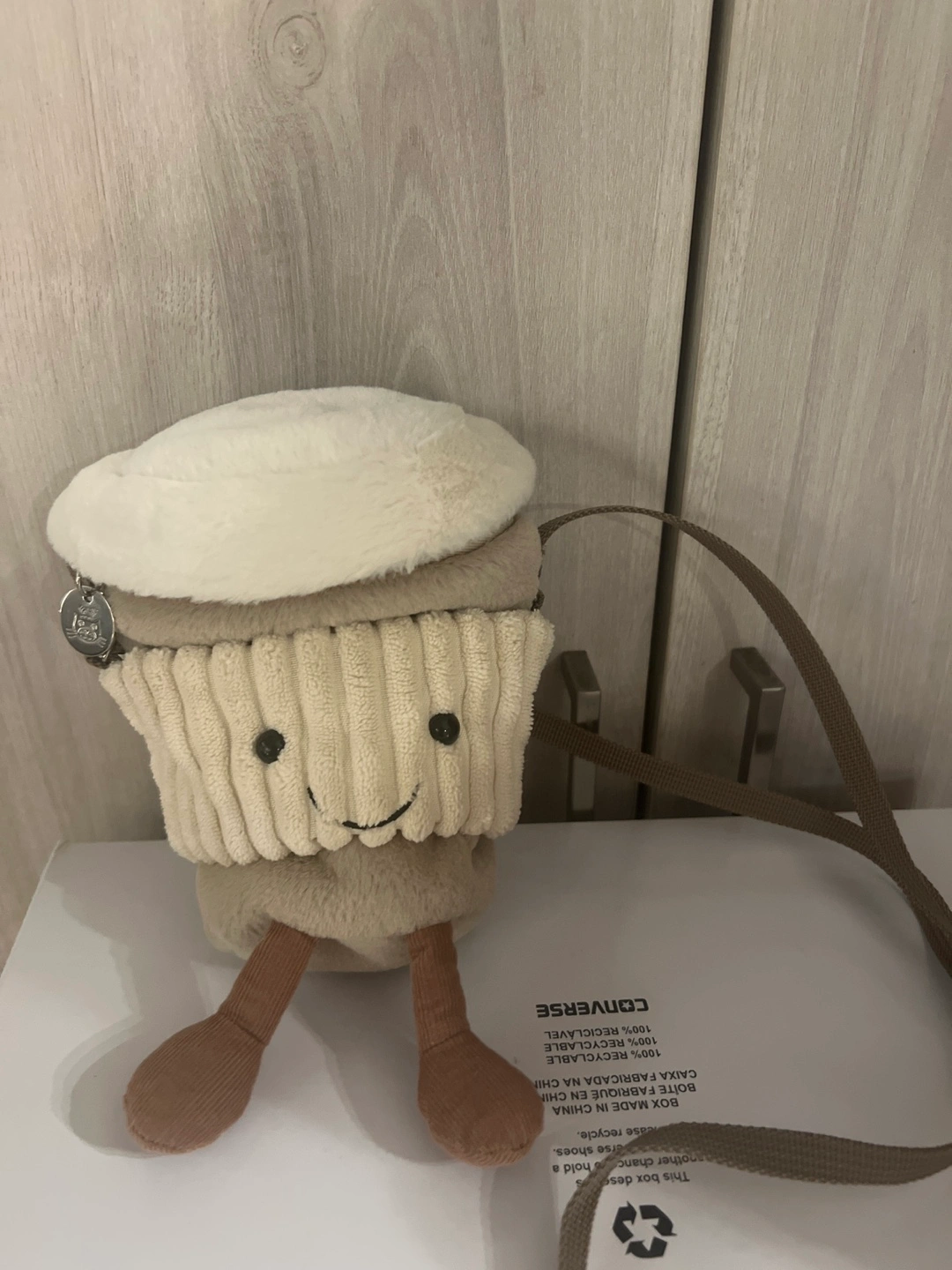 This is the Jellycat Amuseable Coffee to Go Bag. It's in great condition and ready for a new home. It's a cute and quirky bag for carrying small items.