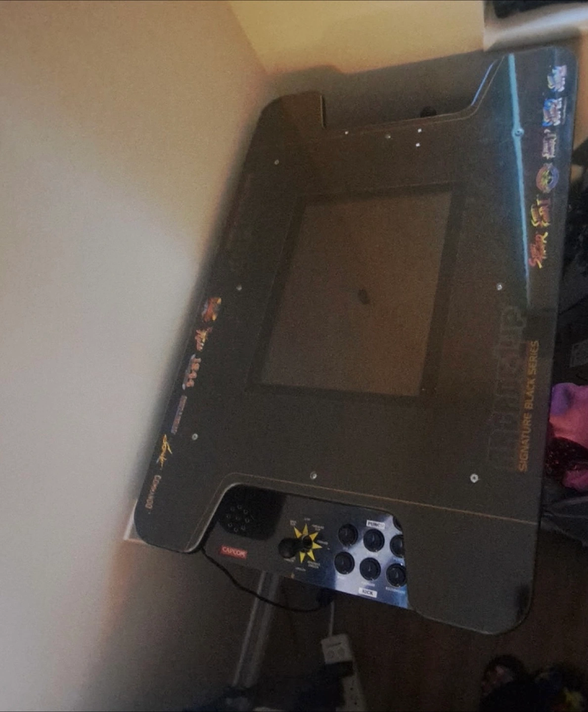Selling an Arcade1Up Signature Black Series arcade table! It features the classic Street Fighter game and has a sleek design. Perfect for some retro gaming fun!