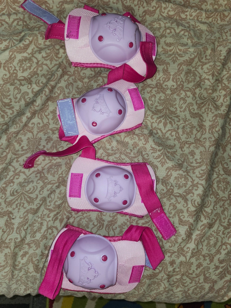 A super cute pink helmet featuring Minnie Mouse! Perfect for biking, skating, or scootering. It's in great condition and ready for a new adventure free elbown and knee pads