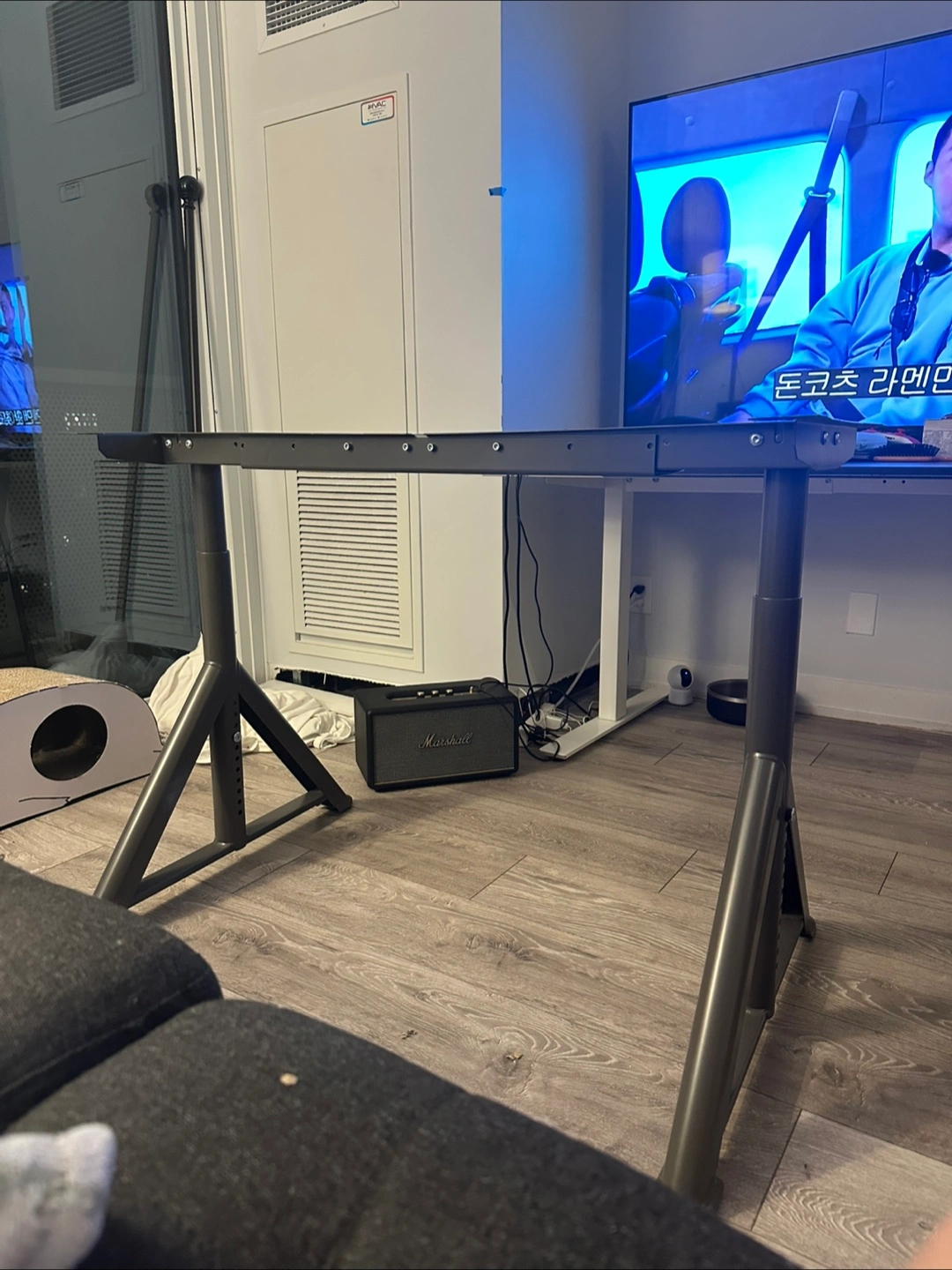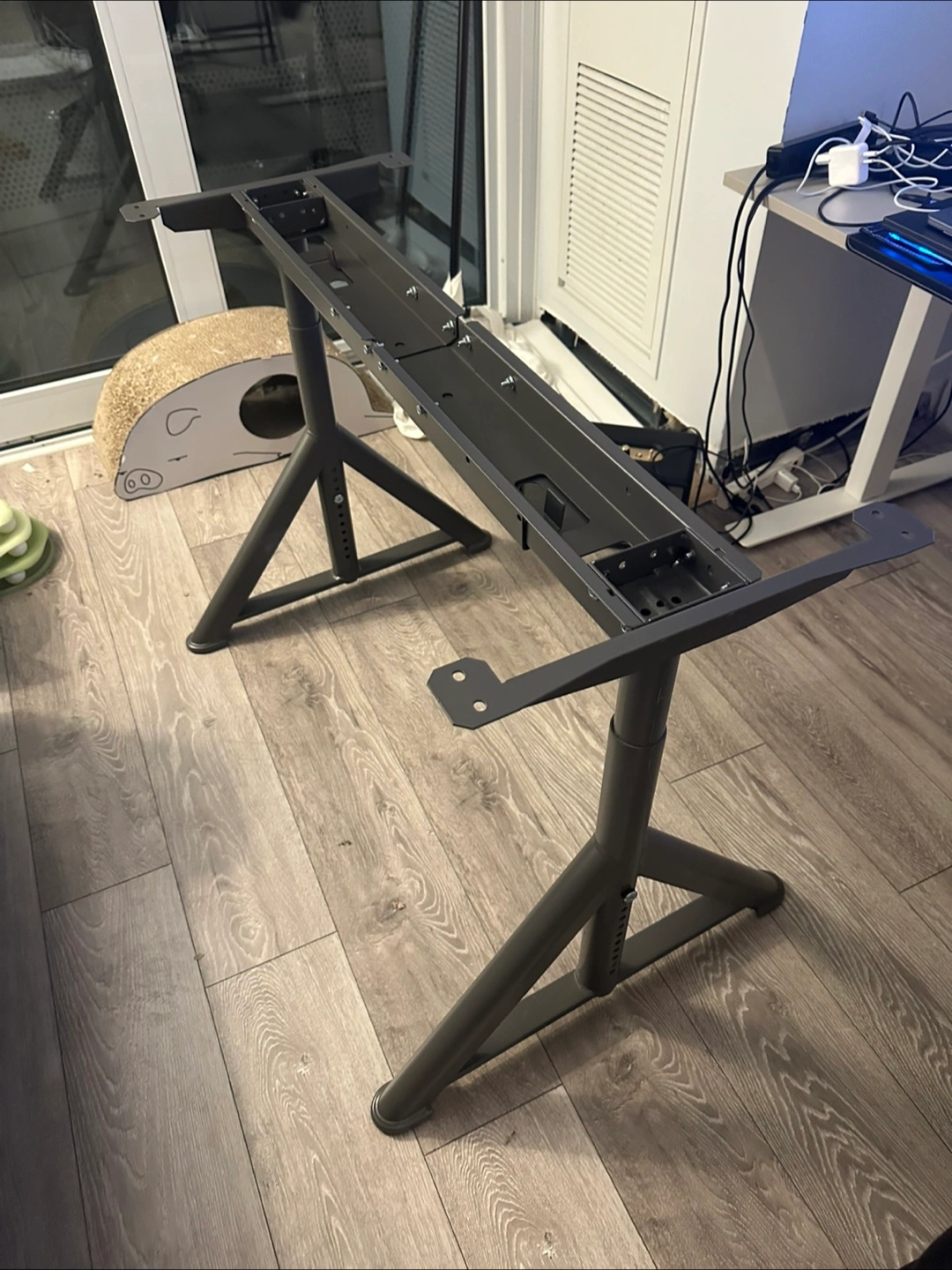 MOVING SALE I’m selling it cheap because I lost the screws that connect the desk to the frame. The desk is also included, although it’s not shown in the photo. (Brown colour) It's in great shape and ready for a new desktop. This frame is height adjustable, making it perfect for both sitting and standing desks. It's sturdy and reliable, ensuring a stable workspace. Pick Up only in Finch