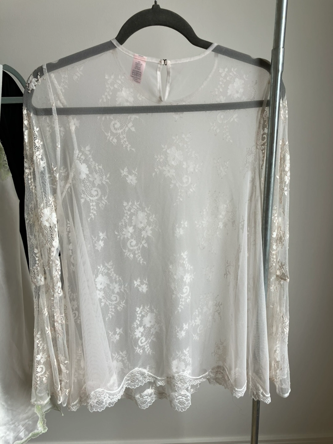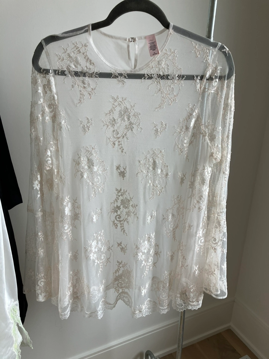Selling a beautiful Victoria's Secret lace top. It's a size M and features a delicate floral lace pattern. Perfect for layering or wearing on its own!