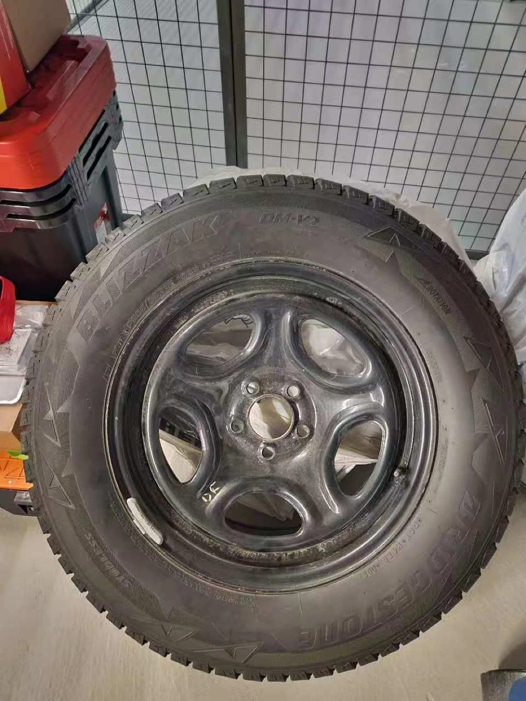 Selling 4 Bridgestone Blizzak DM-V2 winter tire, size 225/60 R18. 109S, with metal rim and air pressure sensor. It's made in Japan, so I in good condition and ready to keep you safe on the roads this winter!