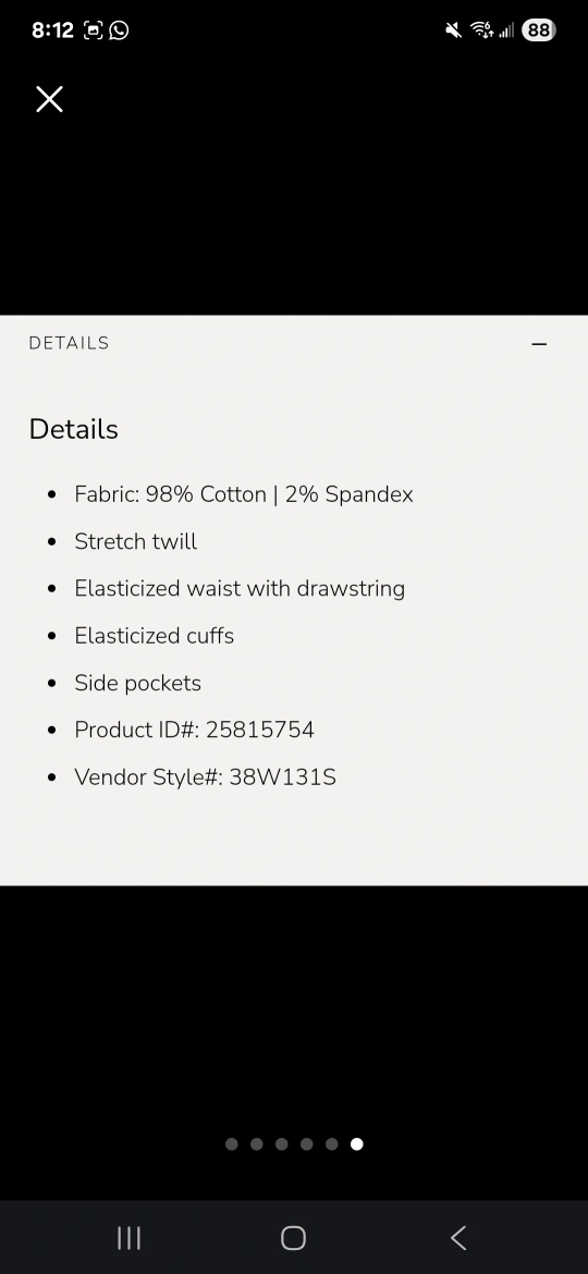 They have an elasticized waist with a drawstring and elasticized cuffs for a comfy fit. Made from 98% cotton and 2% spandex, they're also a stretch twill material.