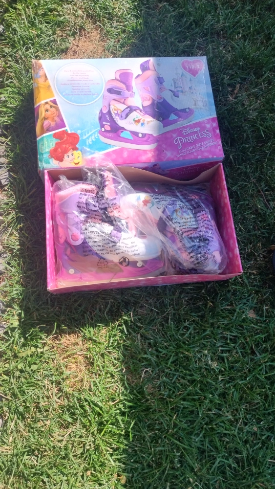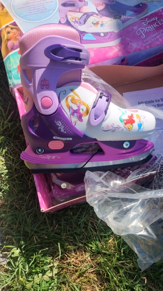 These are new Disney Princess adjustable ice skates, perfect for your little one to learn to skate. The skates are easily adjustable to fit growing feet and feature fun Disney Princess graphics.