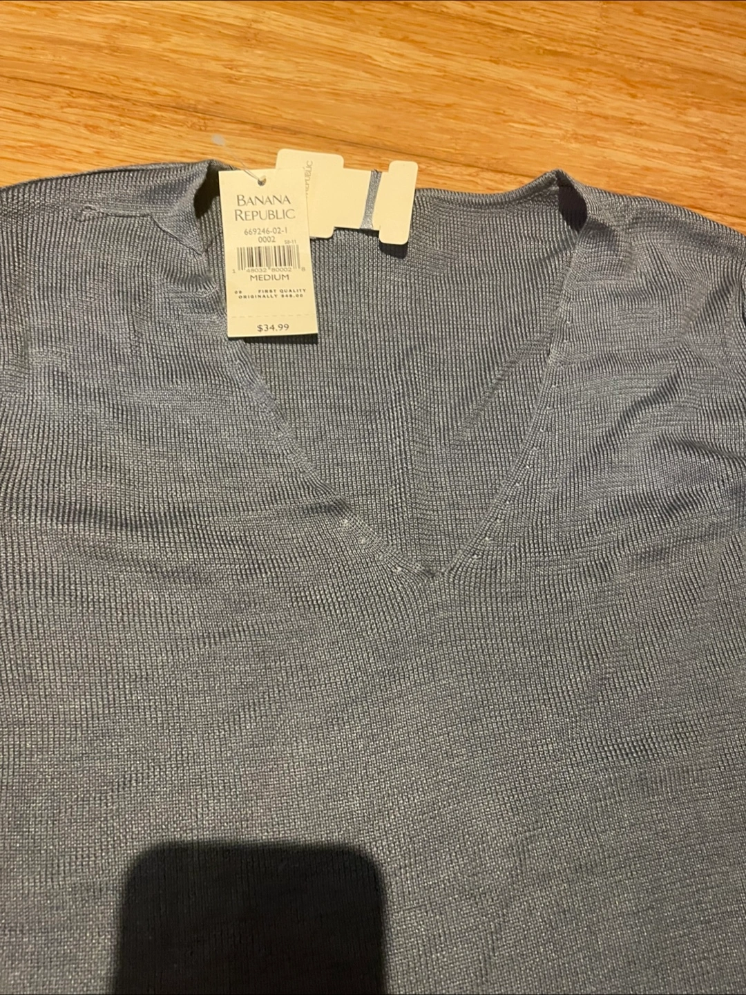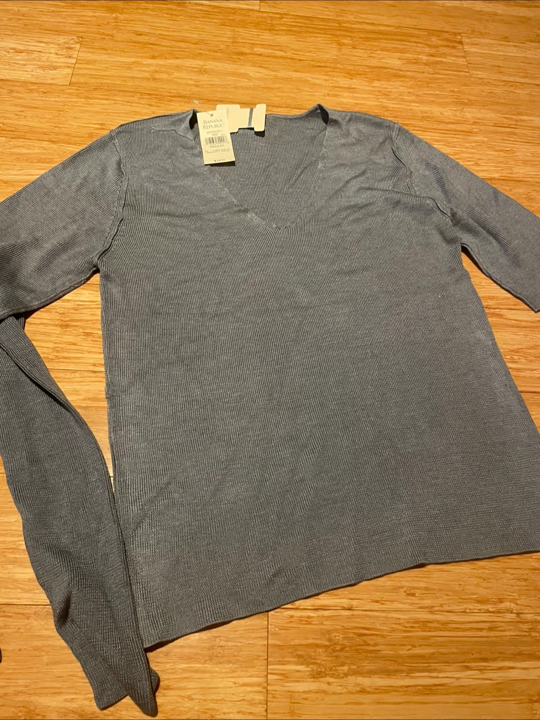 Selling a brand new Banana Republic set that includes a cardigan and a matching top! The set is a beautiful silk grey colour and a size medium. The tags are still attached, and it was originally bought for $49.99 and $34.99. Pickup only.