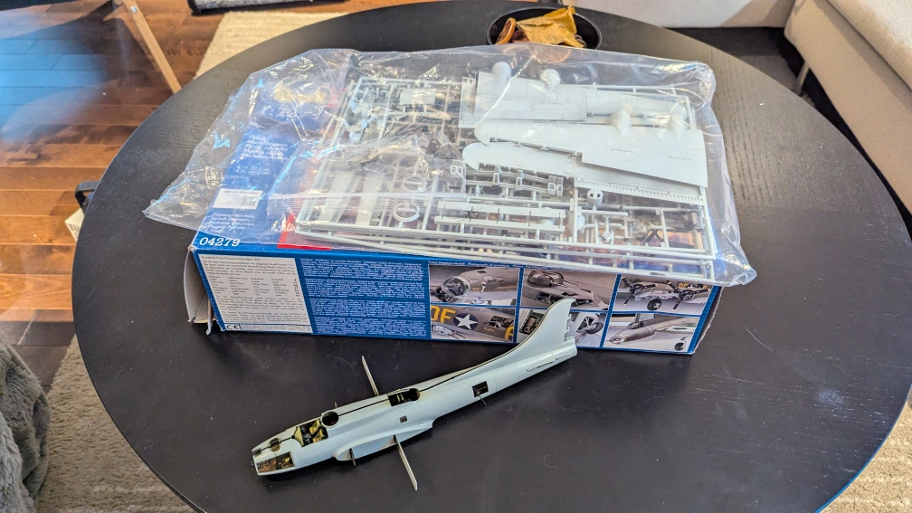 Selling a Revell B-17F "Memphis Belle" model kit. It's a 1:72 scale model. It comes with the original box and instructions. Interior is finished and detailed. Most parts are still sealed.
