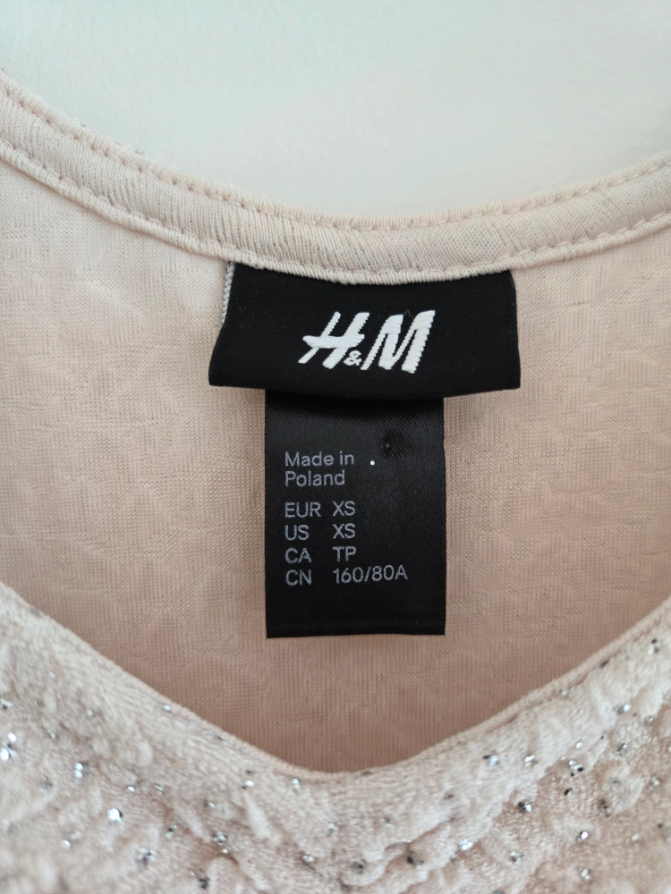H&M mini dress with glitter and sparkles! It's a size XS and comes in a lovely beige colour. Perfect for a night out or a special occasion