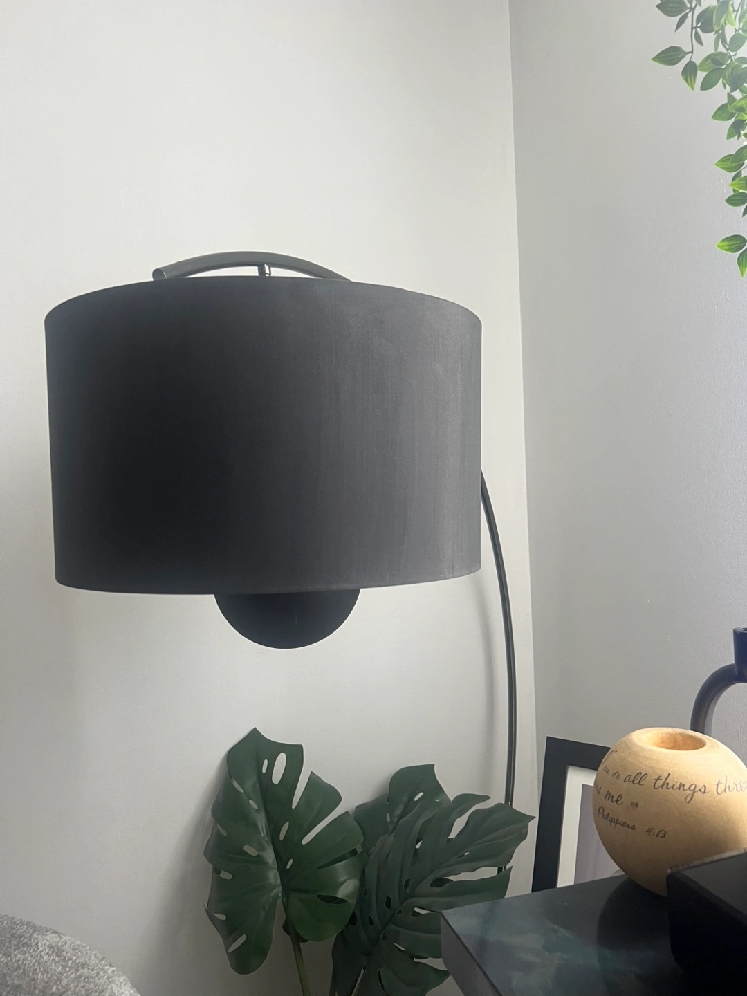 Selling a stylish black floor lamp! It's in great shape and would look great in any room. It has a sleek, modern design that would complement any decor. Perfect for adding some extra light to your living space or bedroom
