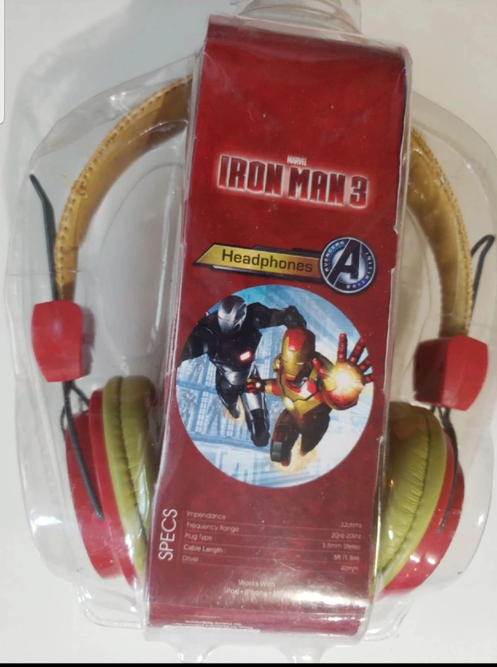 Selling a brand new pair of Marvel Iron Man 3 headphones made by Sakar! They are still in the original packaging. These headphones feature a cool Iron Man design and are perfect for any Marvel fan