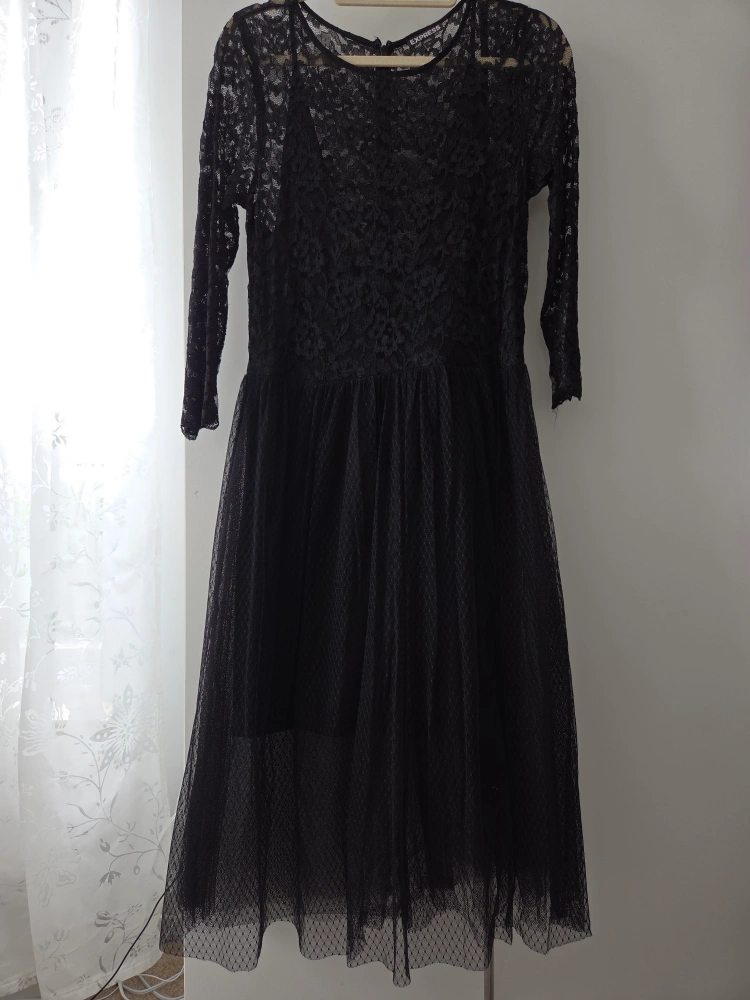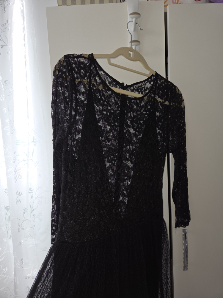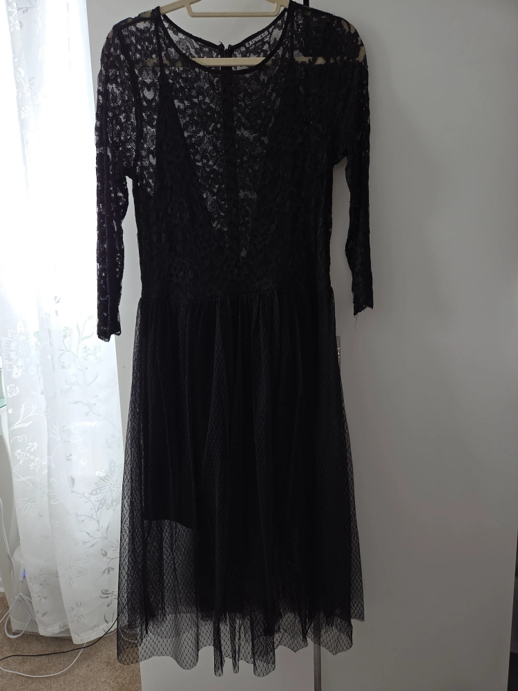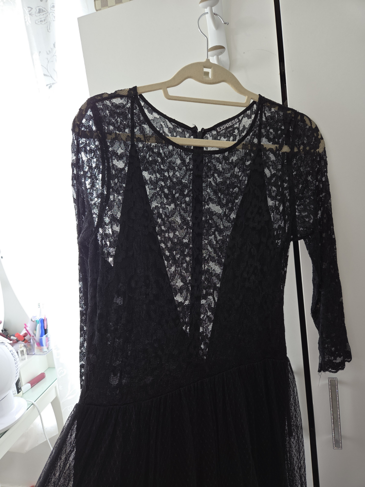Here's a lovely black lace dress from Express! It features a flattering silhouette and delicate lace detailing. Perfect for a night out or a special occasion! It's in great condition and ready for a new home