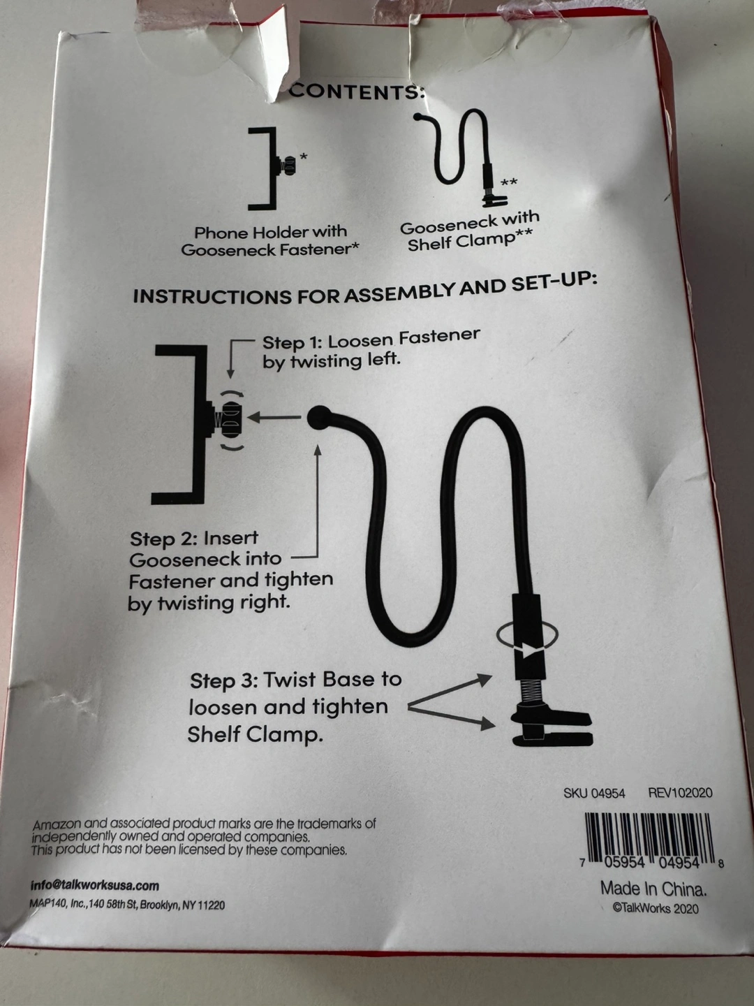 Selling a TalkWorks Gooseneck Mount, This mount has a phone holder with a gooseneck fastener and a gooseneck with a shelf clamp. Perfect for hands-free use of your phone or tablet. Includes instructions for easy assembly and setup.