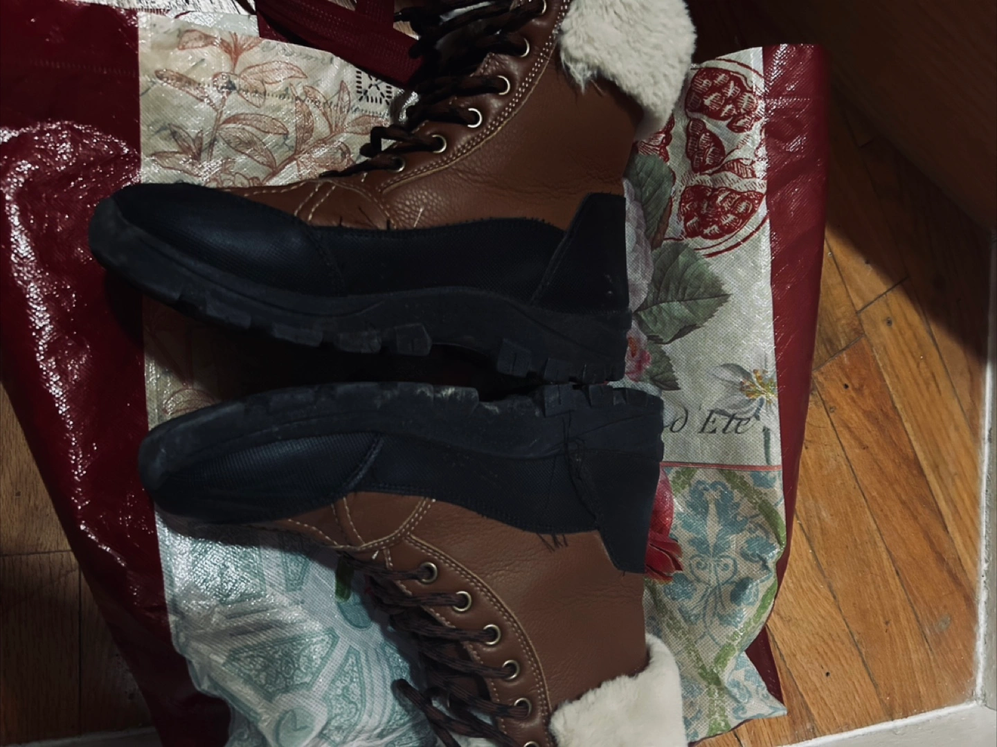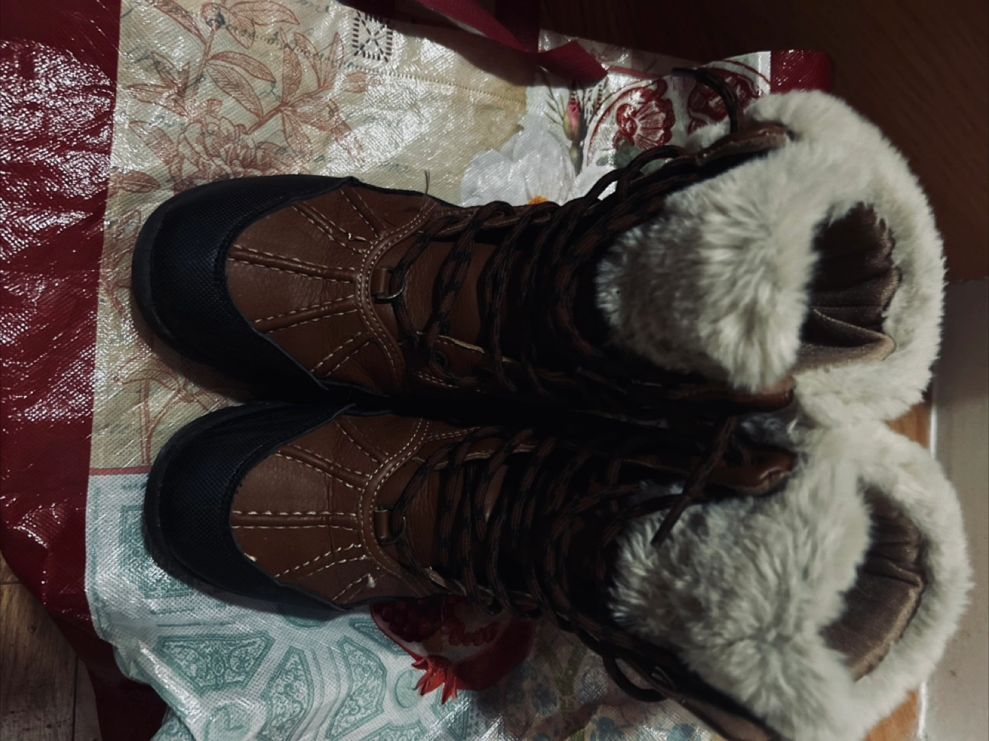 74Cozy brown winter boots from Streetwear Society! These are perfect for keeping your feet warm and dry during the cold months. They feature a lace-up design and a plush faux fur lining. Pick up near Steeles and Dufferin