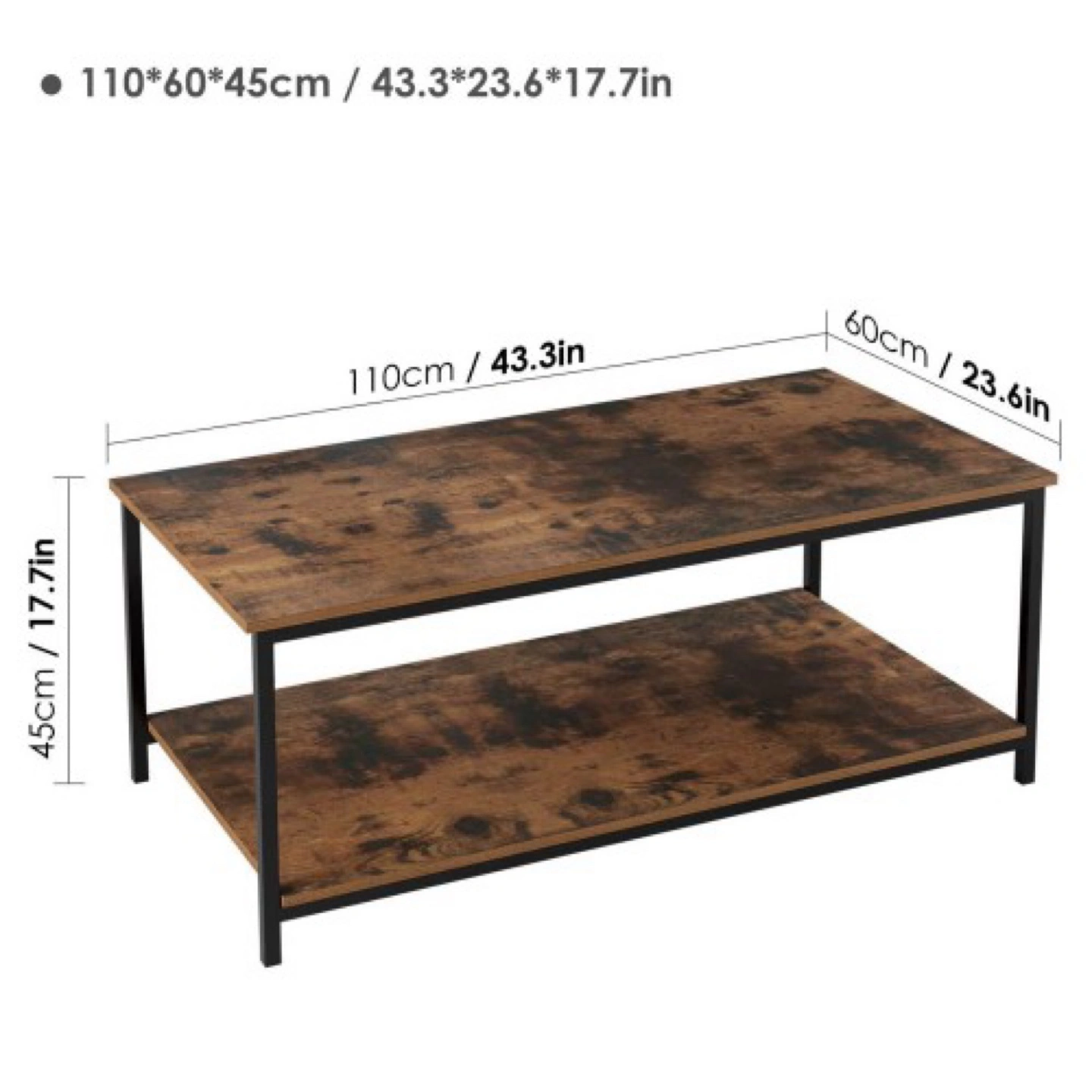 Brand New. Selling a coffee table with a rustic brown finish. It has heavy-duty angle iron legs for optimum stability. The dimensions are 110cm x 60cm x 45cm (43.3" x 23.6" x 17.7")
