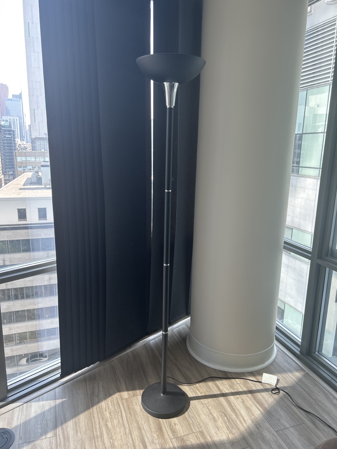 Giving away a sleek black floor lamp! It's in great condition and would look great in any living room or bedroom. It has a modern design and provides a nice ambient light