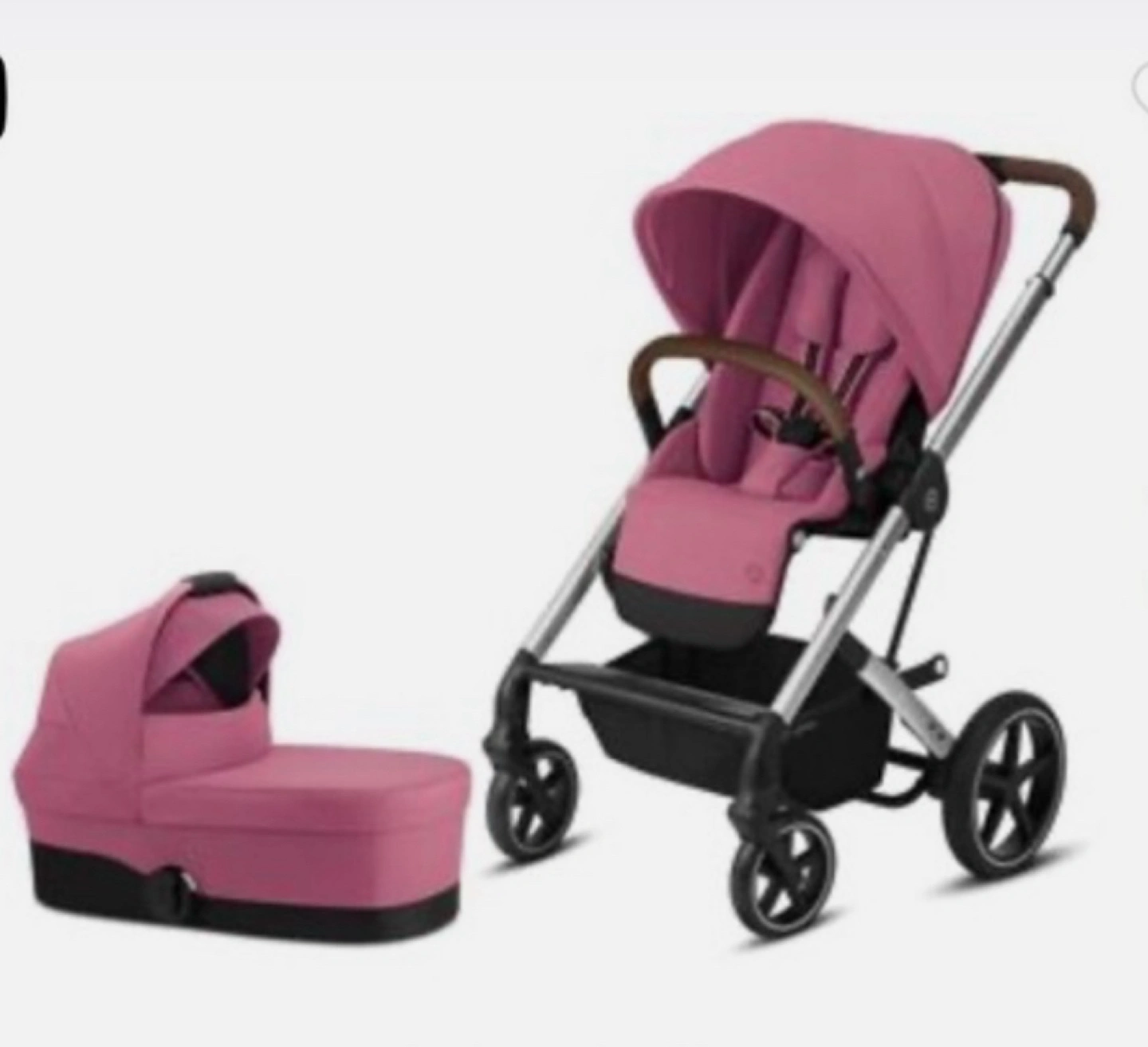 Selling full sized stroller in a lovely pink color! The bassinet is perfect for newborns and infants. It's in great condition and ready for a new family to enjoy. The Cybex is known for its versatility and smooth ride, so you and your little one will be comfortable on all your adventures