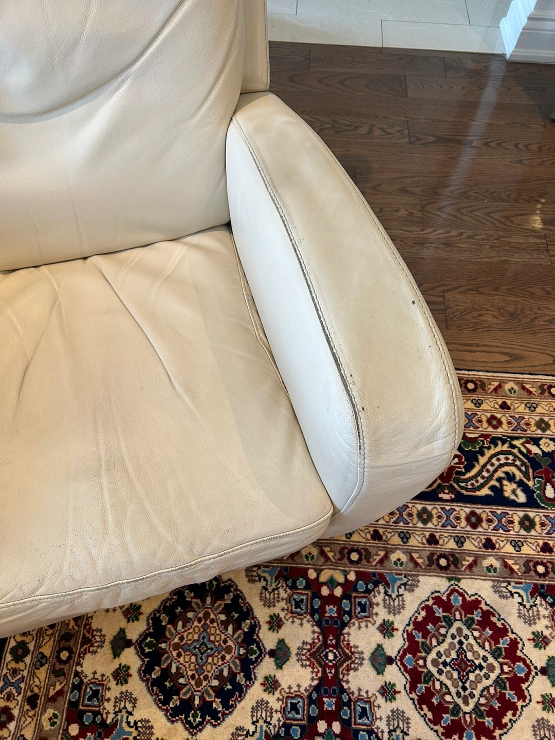 Selling a comfortable cream leather sofa set. It's in good condition and would look great in any living room. The set includes a sofa and a loveseat. Pillows are included! Brand is from Natuzzi