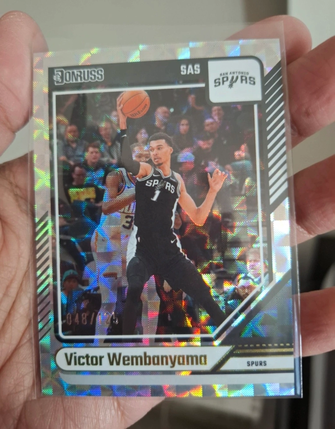 Selling a Victor Wembanyama basketball card from the Donruss series! It features Wembanyama in his San Antonio Spurs uniform. A great addition for any basketball card collector! numbered /125