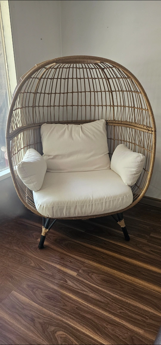 Selling a cozy egg chair! It comes with a comfortable cushion. Perfect for adding a unique touch to any room. The chair is in excellent like new condition and ready for a new home. Always it's been inside in living room.