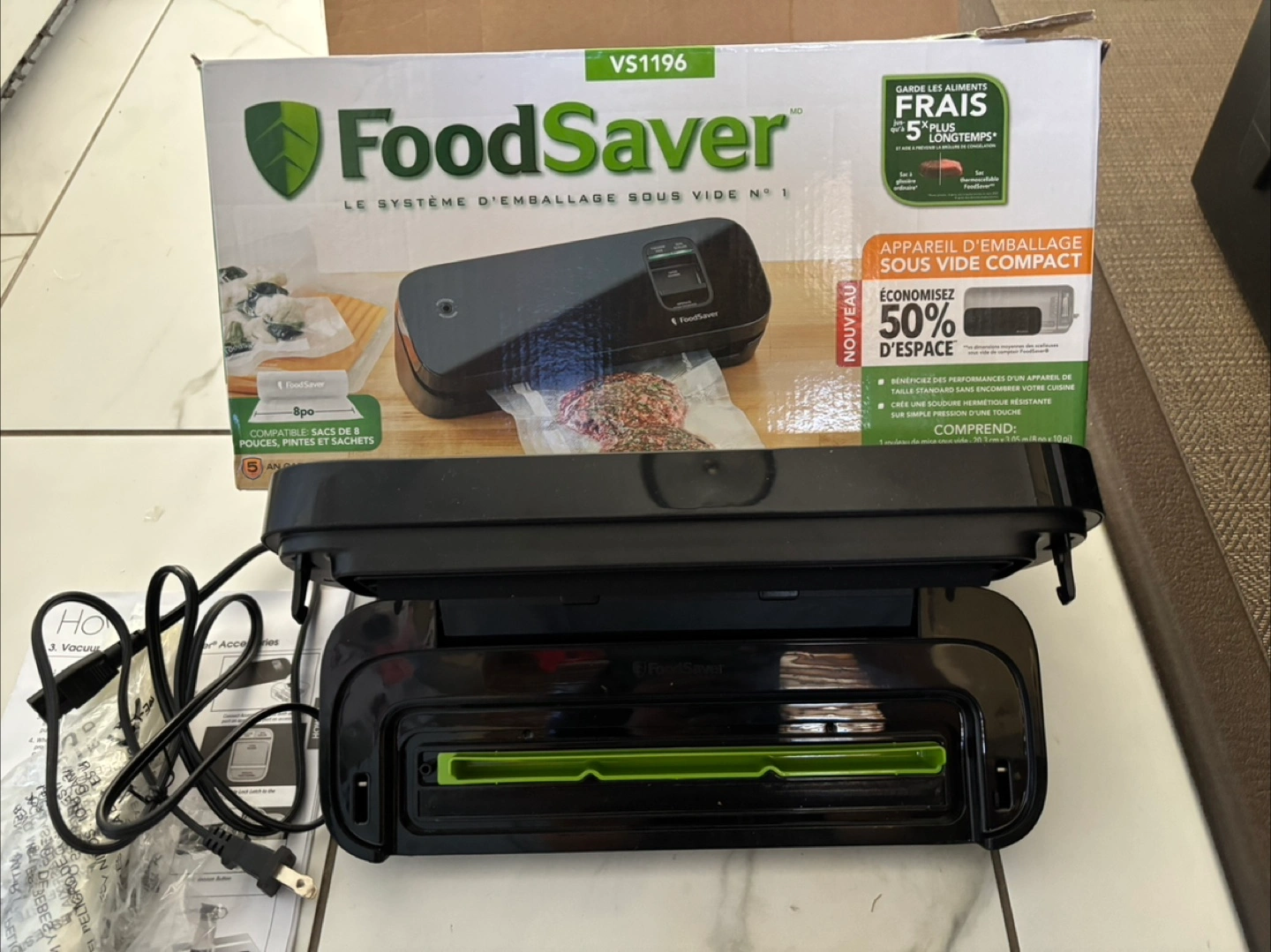 Selling a FoodSaver VS1196 food vacuum sealer! It helps keep your food fresh for longer. The box is included, and it comes with all its original components and accessories. It's a great way to save space and reduce food waste!