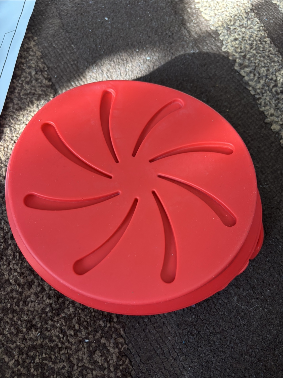 Selling a round red silicone baking pan! It's in great condition and ready for your next baking project. Perfect for cakes, pies, or even quiches. The silicone material makes it super easy to clean and ensures your baked goods release effortlessly. Happy baking!